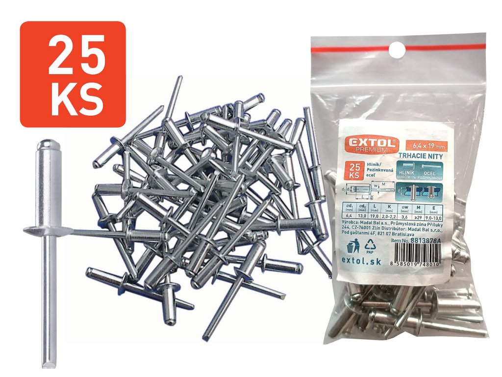 Nity trhacie hliníkové 6,4x19mm 25ks, EXTOL PREMIUM