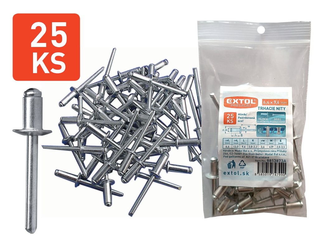 Nity trhacie hliníkové 6,4x9,6mm 25ks, EXTOL PREMIUM