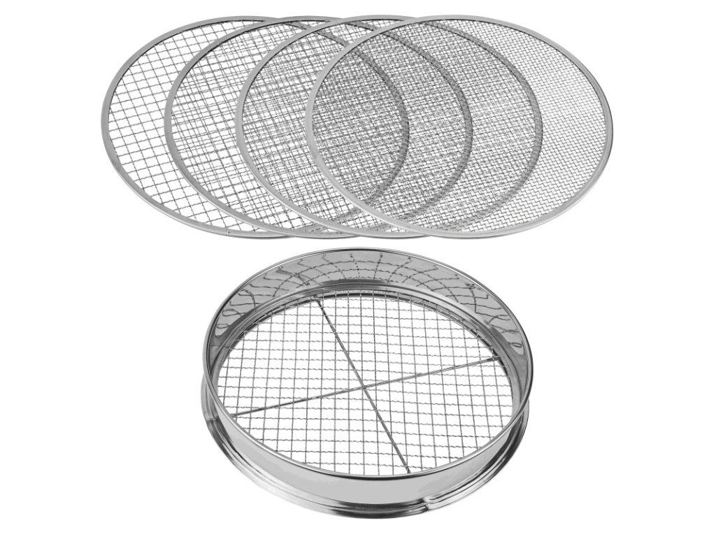 Záhradné sito vyrobené z nehrdzavejúcej ocele s piatimi veľkosťami ôk. Záhradné sito so špeciálnymi vložkami umožňuje efektívne preosievanie pôdy, a tak sa dajú odstrániť hrubé častice, ako sú kamene, zvyšky koreňov a burina. Záhradné sito vyrobené z nehrdzavejúcej ocele s piatimi veľkosťami ôk. Záhradné sito so špeciálnymi vložkami umožňuje efektívne preosievanie pôdy, a tak sa dajú odstrániť hrubé častice, ako sú kamene, zvyšky koreňov a burina. Môže sa použiť nielen na odstránenie hrubých častíc z pôdy, ale aj na rovnomerné rozloženie semien alebo filtrovanie piesku a kompostu. Vymeniteľné vložky do sita (5 ks) s optimálnymi veľkosťami ôk 3 mm, 5 mm, 8 mm, 10 mm a 12 mm zaisťujú veľkú flexibilitu. Vložky do sita sú pre dosiahnutie lepšieho výsledku mierne vypuklé. Sito perfektne padne do ruky vďaka okrúhlemu tvaru s priemerom 30 cm a výškou 6,5 cm. Vyrobené z nehrdzavejúcej ocele, odolné proti poveternostným vplyvom. Materiál: nehrdzavejúca oceľ Vnútorný priemer: 297 mm Priemer vymeniteľných vložiek do sita: 295 mm Veľkosti ôk na preosievanie: 3 mm, 5 mm, 8 mm, 10 mm, 12 mm Celkové vonkajšie rozmery (DxŠxV): 310 x 310 x 65 mm Hmotnosť: 1,0 kgDoplňkové parametry