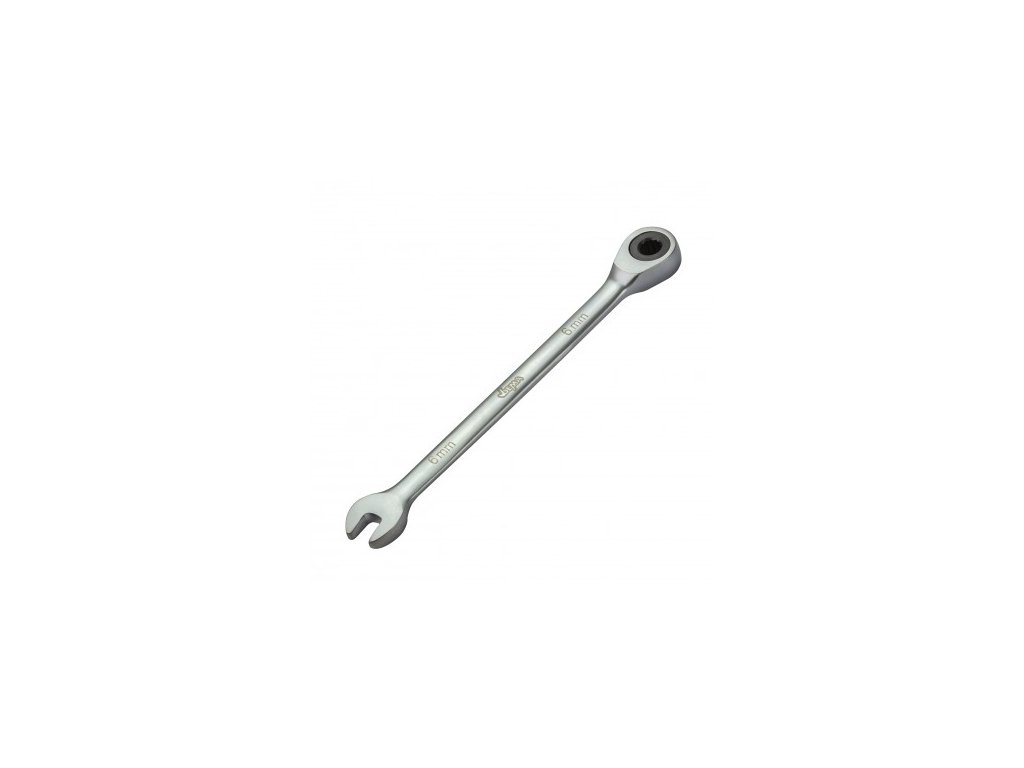 Očko-vidlicový kľúč z chróm-vanádiovej ocele s račňou so 72 zubami, umožňuje jednoduchú prácu aj na ťažko dostupných miestach. Očko-vidlicový račňový kľúč 6 mm