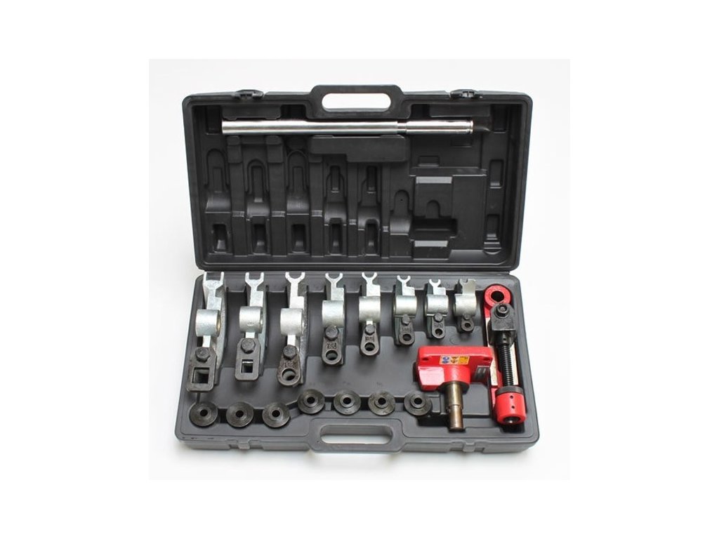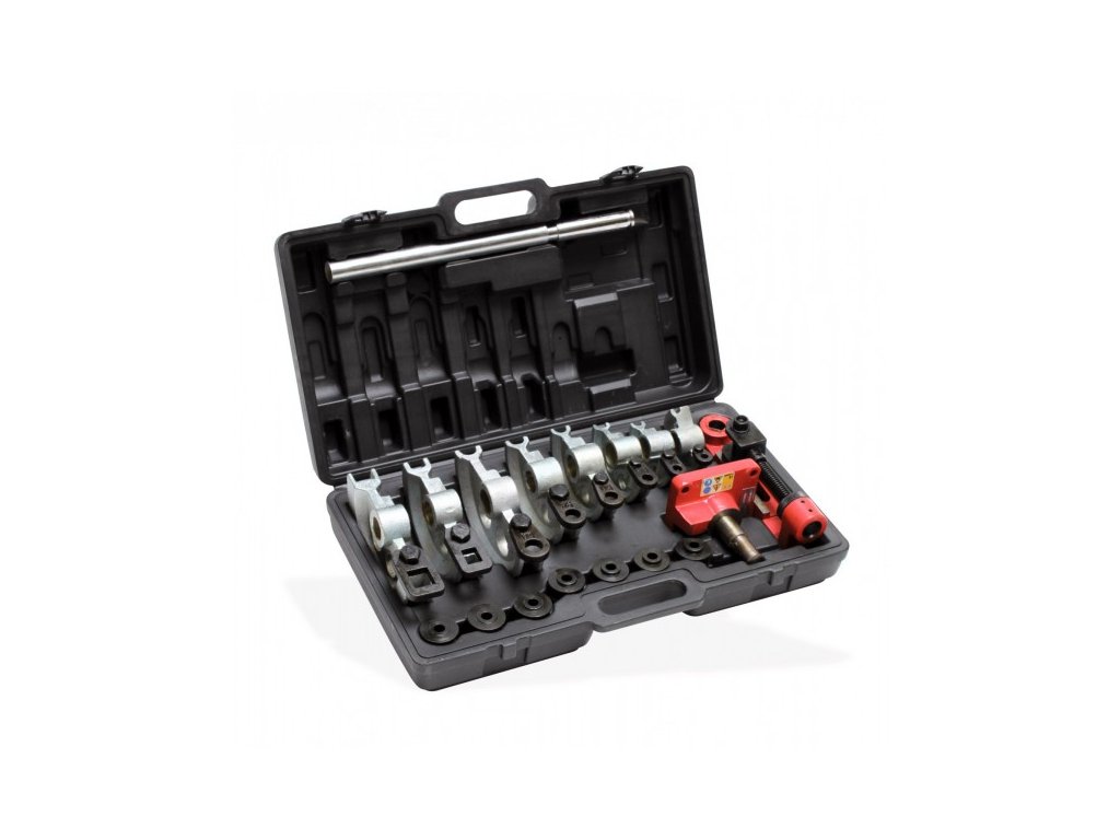 Ohýbačka určená na ohýbanie akýchkoľvek rúr, jednoduché použitie, bez obmedzenia dĺžky ohýbaných rúr. Presné nastavenie nastavovacou skrutkou, dobrý prenos sily cez teleskopickú rúrku. 8 tlakových nástavcov a 7 tlakových valcov. Ohýbačka rúr 9 – 23 mm (3 / 8 – 7 / 8)