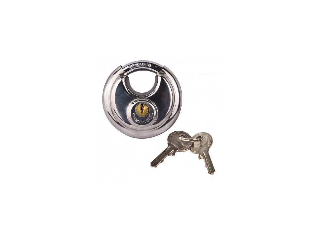 Okrúhly zámok na zabezpečenie takmer všetkých posuvných konštrukcií, bezpečnostných zariadení oja prívesu, pivničných a podlahových debien, dverí na stavenisku, záhradných domčekov, kôlní na náradie a podobne. Okrúhly tvar ponúka menej možností manipulácie. Vrátane 2 kľúčov. Okrúhly visiaci zámok z nehrdzavejúcej ocele 70 mm