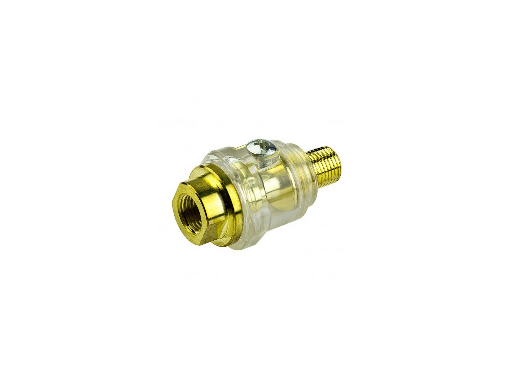 Olejový primazávač na mazanie pneumatického náradia olejovou hmlou. Zaisťuje funkčnosť pneumatických prístrojov. Jednoducho sa priskrutkuje pred každý prístroj poháňaný stlačeným vzduchom, naplní sa olejom a pri každom stlačení sa uvoľní malé množstvo oleja do prúdu vzduchu. Zliatina mosadze, s kontrolným okienkom.