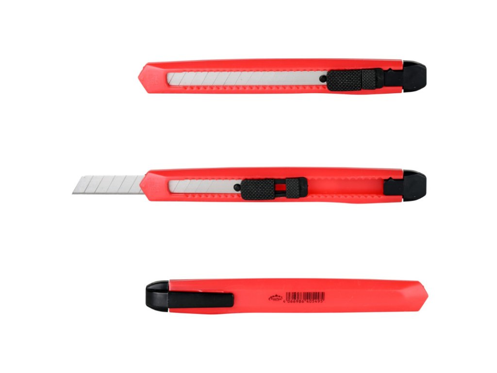 Plastový orezávací nôž pre domácnosť, záhradu, hobby a prácu. Nôž je vybavený čepeľou SK5 a má šírku čepele 9 mm. Vďaka tvarovanej rukoväti sa nôž pohodlne drží v ruke a je spoľahlivým pomocníkom pri všetkých renovačných prácach. Plastová rukoväť, s uzamykateľným záverom, so sponou na vrecko. Plastový orezávací nôž pre domácnosť, záhradu, hobby a prácu. Nôž je vybavený čepeľou SK5 a má šírku čepele 9 mm. Vďaka tvarovanej rukoväti sa nôž pohodlne drží v ruke a je spoľahlivým pomocníkom pri všetkých renovačných prácach. Plastová rukoväť, s uzamykateľným záverom, so sponou na vrecko. Šírka čepele: 9 mm Dĺžka čepele: 85 mm Hrúbka čepele: 0,4 mm Segmenty: 13 Odlamovacie body: 12 Celkové rozmery (DxŠxV): 126 x 12 x 16 mm Hmotnosť: 10 gDoplňkové parametry