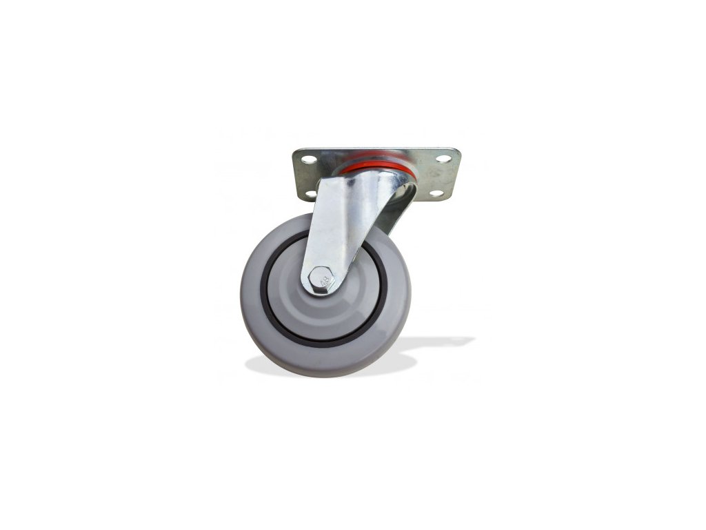 PVC koleso na Plošinový vozík so sklápateľnou rukoväťou TW 300 (kód tovaru: 20168D). S montážnou doskou, s guľôčkovým ložiskom. Otočné koliesko pre plošinový vozík TW 300