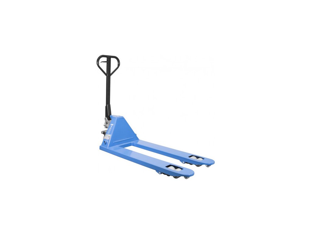 Paletový vozík pomáha pri preprave nákladov v sklade alebo v dielni. Jeho stabilná zostava s oceľovou konštrukciou odolnou voči skrúteniu a stĺpikom riadenia otočným o 180° zaisťuje malý polomer otáčania. Nosnosť paletového vozíka je 2500 kg. Funkcia zdvíhania sa vykonáva pomocou oja s ovládaním ventilu. Funkciu spustenia je možné vyvolať na rukoväti a dodatočne na integrovanom nožnom pedáli. Polyamidové kolieska, pomocné nábehové valčeky na naloženie palety zboku.