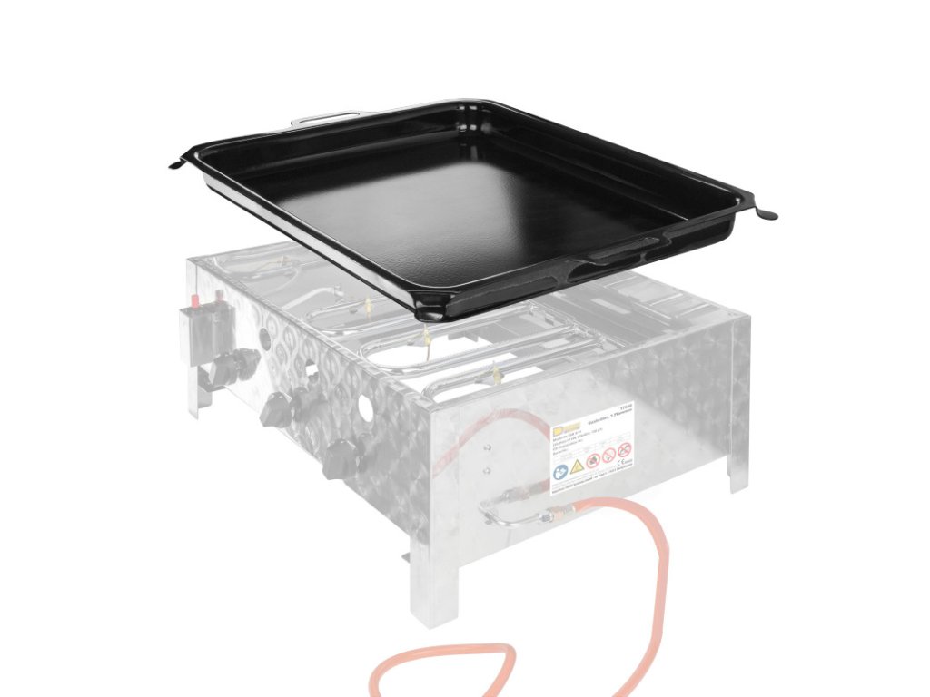 Smaltovaná oceľová panvica na pečenie ku Plynovému pekáču trojhorákovému (kód tovaru: 17545D). Ťažký smaltovaný oceľový plech na pečenie.