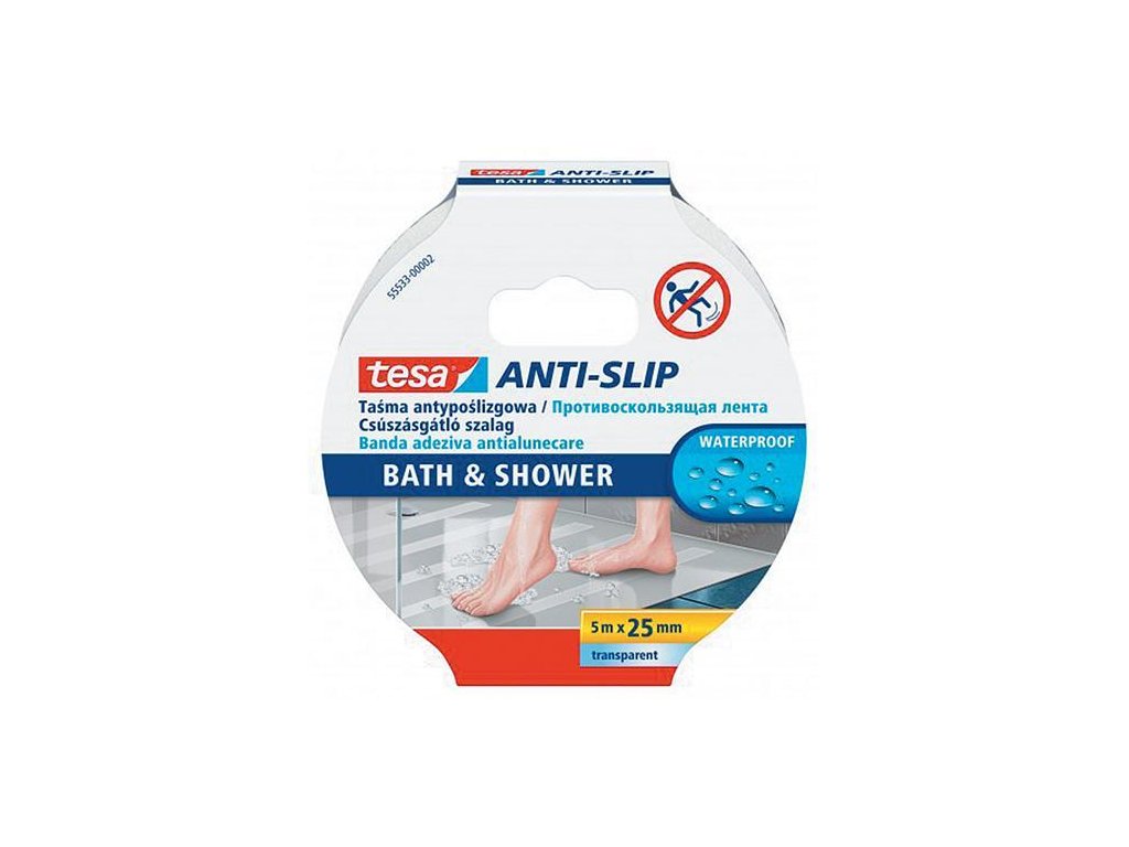Páska tesa® Anti-slip Bath&Shower, protišmyková do kúpeľne, transparentná, lepiaca, 25 mm, L-5 m