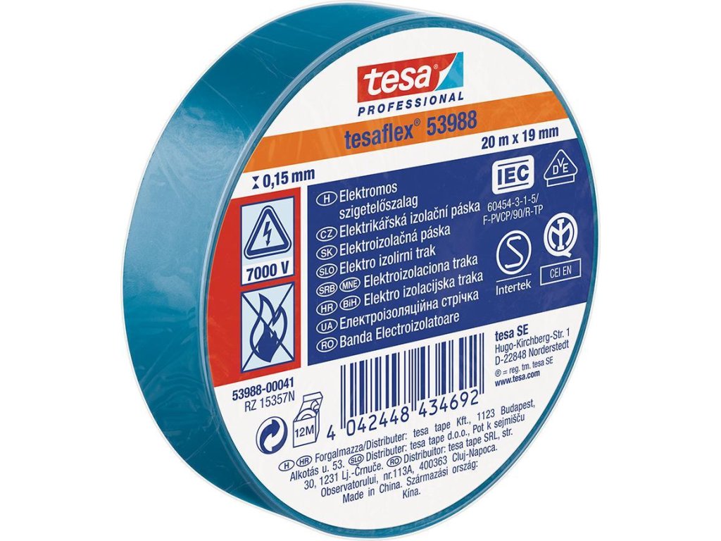 Páska tesa® PRO tesaflex®, elektroizolačná, lepiaca, sPVC, 19 mm, modrá, L-20 m
