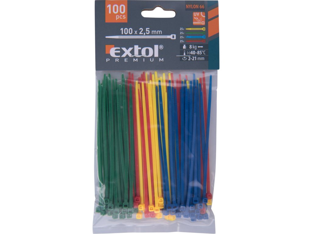 pásky stahovací barevné, 100x2,5mm, 100ks, (4x25ks), 4 barvy, nylon PA66, EXTOL PREMIUM