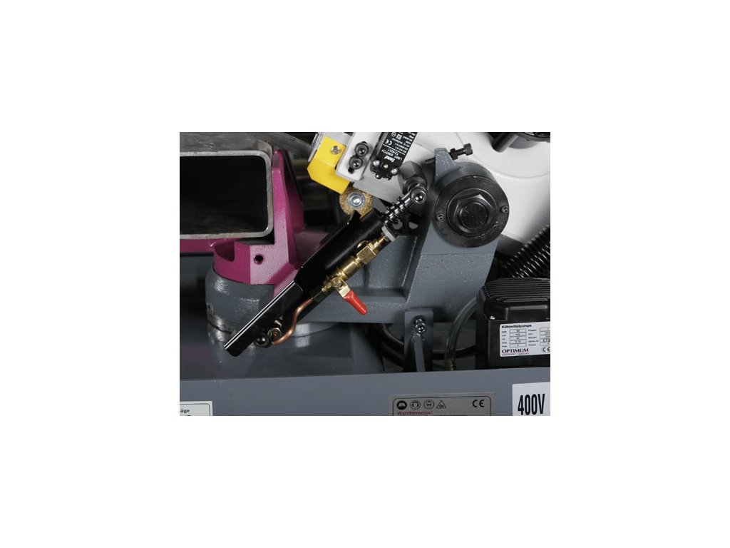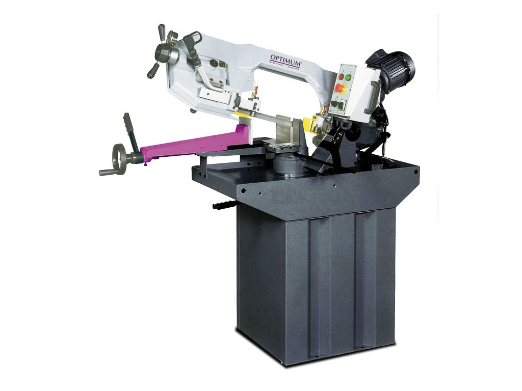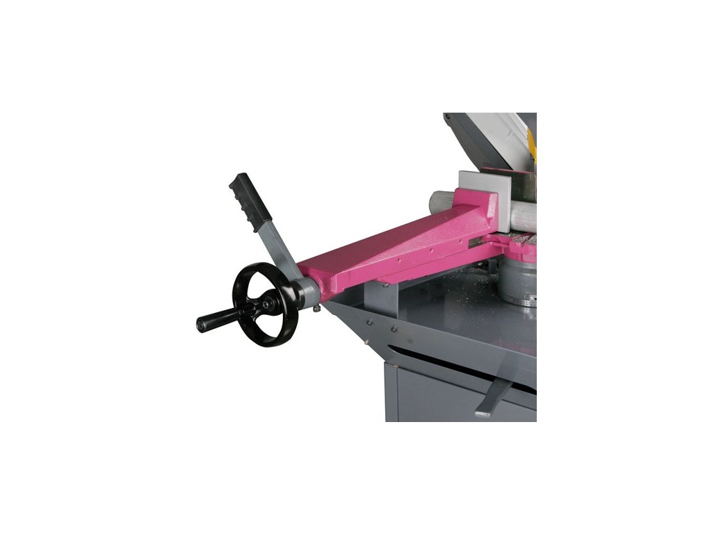 Dvourychlostní profesionální pásová pila na řezání kovu s úhlováním pomocí otočného ramene s plynulou regulací otáček.