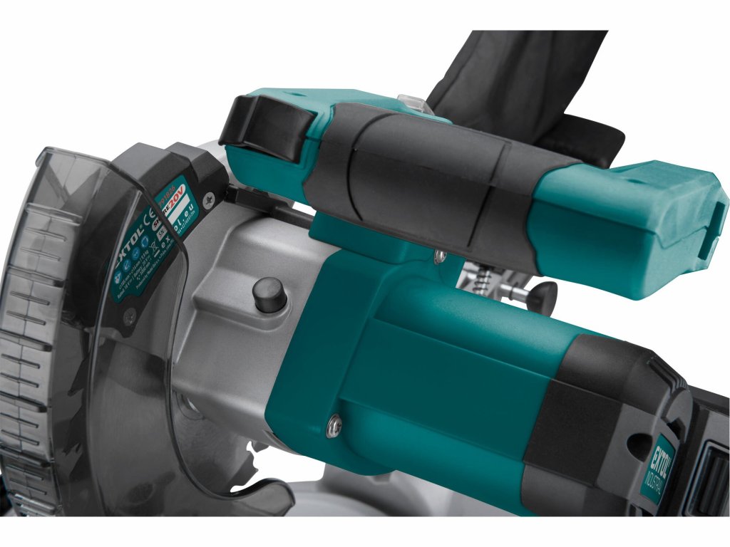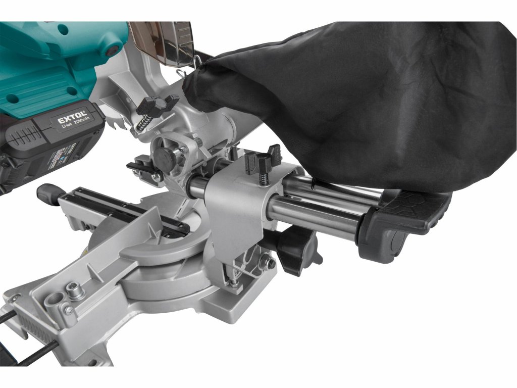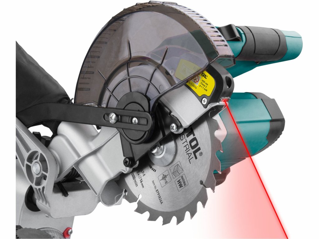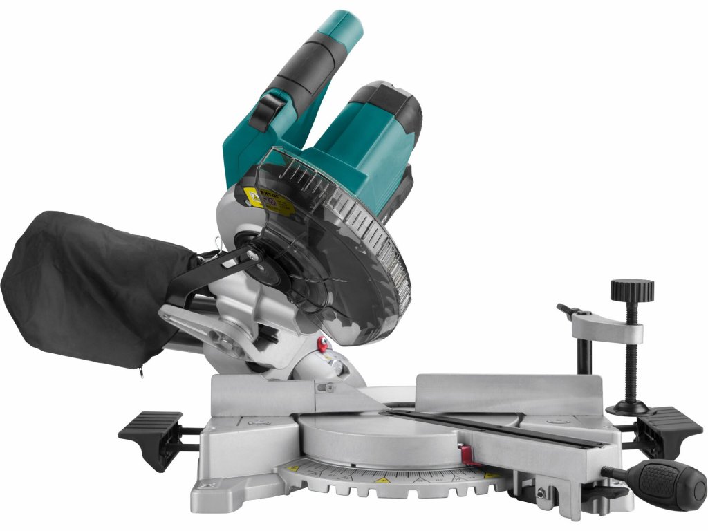 Aku pokosová a kapovacia píla s laserom je určená na vykonávanie presných priečnych a pozdĺžnych rezov masívneho dreva, drevovláknitých a drevotrieskových dosiek, tenkých profilov z umelej hmoty, hliníkových profilov a tenkých mäkkých neželezných materiálov s použitím na to určených pílových kotúčov. Píla je poháňaná najmodernejším bezuhlíkovým motorom s 3300 ot./min, ktorý umožňuje rýchly a ľahký rez. Tento nový typ motora má vyššiu životnosť, je výkonnejší a má menšiu spotrebu ako klasické motory s uhlíkovými kefami. Masívna základňa píly je vyrobená z hliníka. Pre pohodlnú prácu je píla vybavená laserom, výsuvnými opierkami pre dlhšie materiály a svorkou pomocou ktorej si môžete upnúť materiál na pracovnú plochu. Zvýšenie bezpečnosti práce zaručuje elektrická brzda, ktorá zastaví pílový kotúč ihneď po uvoľnení spínača. súčasťou píly je výstup pre zachytávanie pilín do priloženého vrecúška alebo pre pripojenie k odsávaciemu systému.