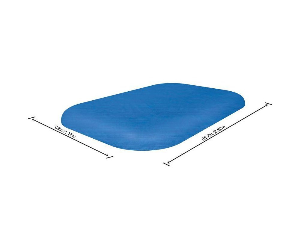Plachta na bazén ochráni váš bazén pred nečistotami a zároveň pomáha udržiavať teploty vody v bazéne. Efektívne zabráni vniknutiu zvyškov, listov a iných nečistôt do vášho bazéna. Plachta tiež eliminuje rast rias a znižuje potrebné množstvo nákladných chemikálií. Plachta je vybavená praktickými výpustnými otvormi, ktoré zabraňujú hromadeniu vody na povrchu plachty. Ľahko sa inštaluje, je extrémne odolná a disponuje lanami na zaistenie k bazénu. Je vhodná pre modré obdĺžnikové rodinné bazény s rozmermi 2,62 m x 1,75 m x 51 cm.