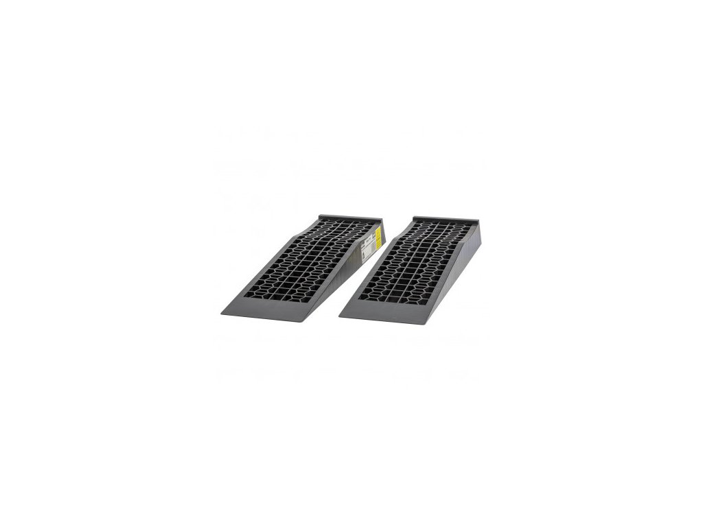 Plastové nájazdové rampy umiestnia automobil do pracovnej výšky 7 cm nad zemou. Mimoriadne široký nájazd, kvalitný materiál polypropylén (PP), s koncovým dorazom kolesa, nízka hmotnosť. Dlhé prevedenie = vynikajúco použiteľné aj na nízko položené osobné automobily/automobily vybavené spojlerom. Balenie obsahuje 2 ks (1 pár).