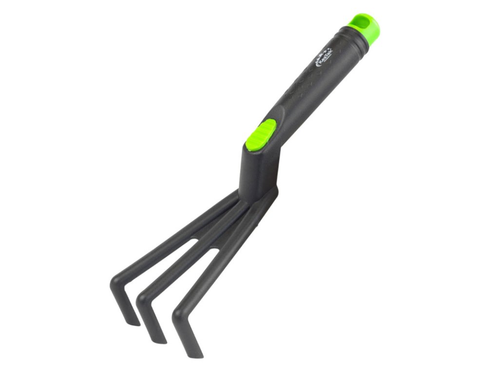 Ručný kultivátor v čiernom farebnom prevedení vyrobený z plastu, ľahký a veľmi pevný. Vhodný na hrabanie a skrášľovanie záhradky, kvetinových záhonov, balkónov alebo terasy. Tri zuby sú pevne ukotvené a zaisťujú tak stabilitu. Ručný kultivátor v čiernom farebnom prevedení vyrobený z plastu, ľahký a veľmi pevný. Vhodný na hrabanie a skrášľovanie záhradky, kvetinových záhonov, balkónov alebo terasy. Tri zuby sú pevne ukotvené a zaisťujú tak stabilitu. Ergonomicky tvarovaná rukoväť zaisťuje bezpečné držanie pri práci v záhrade. Vďaka očku na zavesenie sa dá ľahko uskladniť a nezaberá veľa priestoru. Materiál: plast Farba: čierna, zelená Počet hrotov: 3 Šírka: 75 mm Dĺžka držadla: 130 mm Celková dĺžka: 285 mm Hmotnosť: 76 gDoplňkové parametry