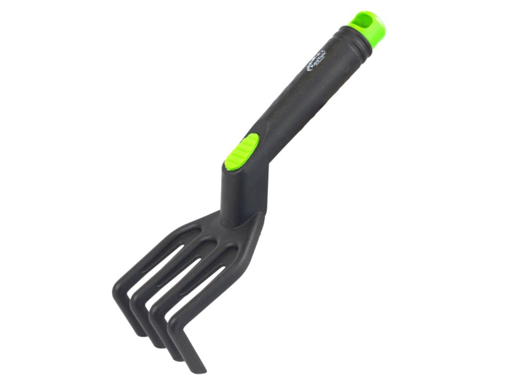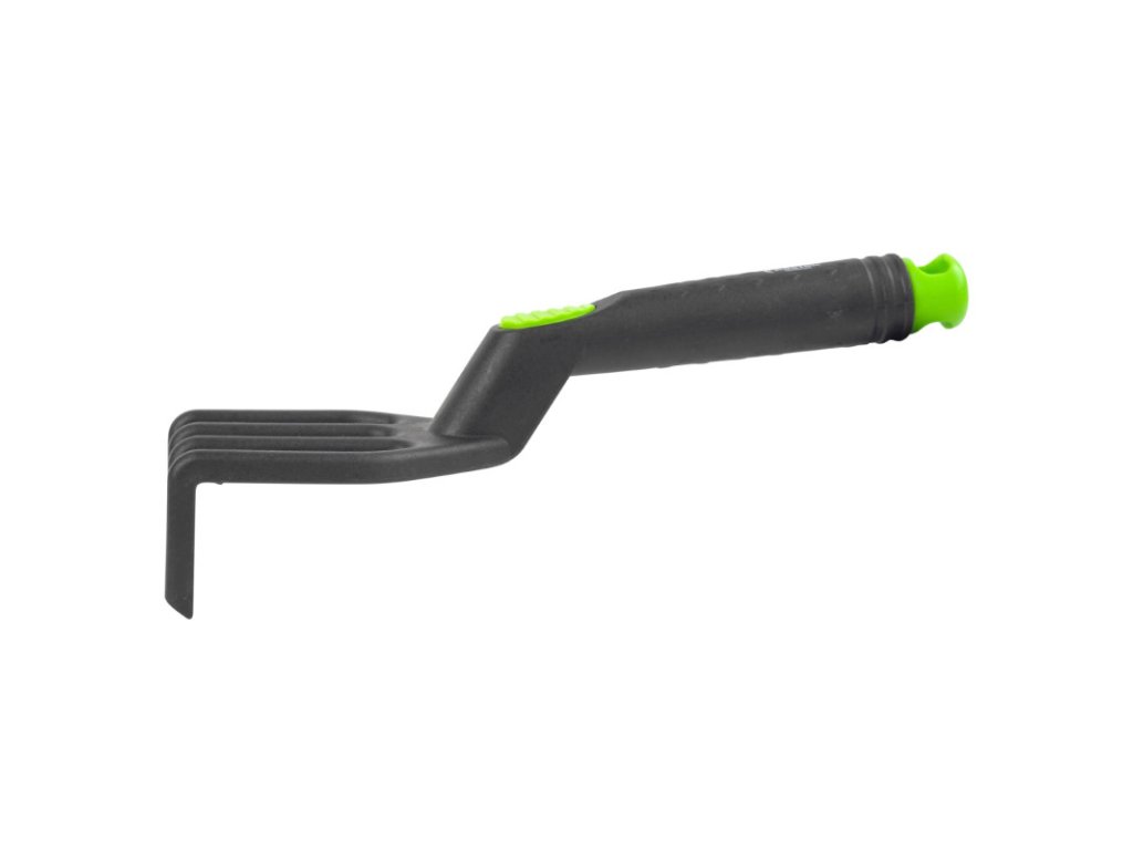 Ručný kultivátor v čiernom farebnom prevedení vyrobený z plastu, ľahký a veľmi pevný. Vhodný na hrabanie a skrášľovanie záhradky, kvetinových záhonov, balkónov alebo terasy. Štyri zuby sú pevne ukotvené a zaisťujú tak stabilitu. Ručný kultivátor v čiernom farebnom prevedení vyrobený z plastu, ľahký a veľmi pevný. Vhodný na hrabanie a skrášľovanie záhradky, kvetinových záhonov, balkónov alebo terasy. Štyri zuby sú pevne ukotvené a zaisťujú tak stabilitu. Ergonomicky tvarovaná rukoväť zaisťuje bezpečné držanie pri práci v záhrade. Vďaka očku na zavesenie sa dá ľahko uskladniť a nezaberá veľa priestoru. Materiál: plast Farba: čierna, zelená Počet hrotov: 4 Šírka: 75 mm Dĺžka držadla: 130 mm Celková dĺžka: 250 mm Hmotnosť: 76 gDoplňkové parametry
