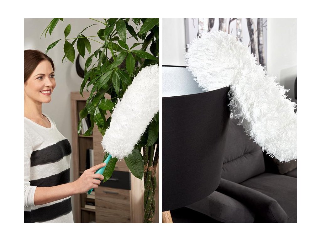 Prachovka DUSTER XL. Rozmery:59x13,5x9 cm. Farba:biela/tyrkysová, materiál:plast/mikrovlákno.