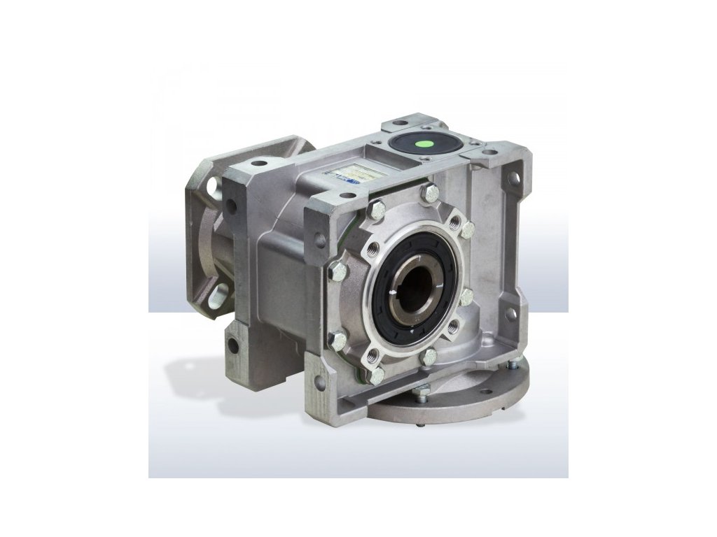 Prevodovka na Skartovač a drvič kartónov 400 V (kód tovaru: 41155). 2x pripojenie na motor a hriadeľ stroja, montáž v troch rôznych polohách – predvŕtané diery.