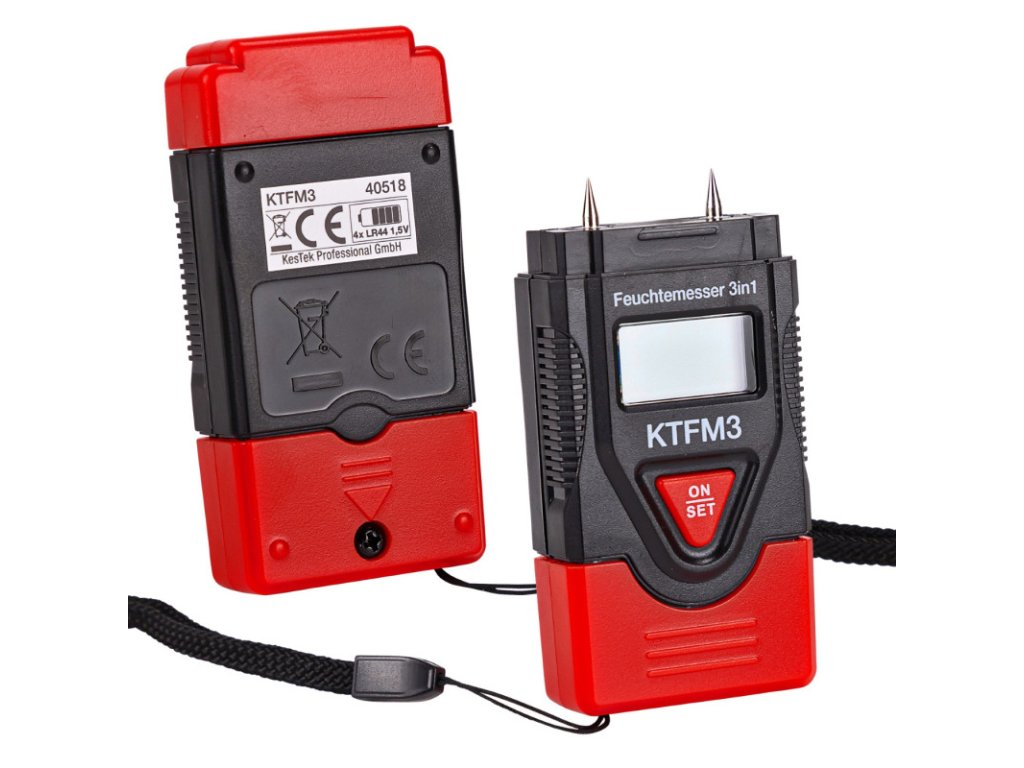 Vlhkomer na rýchle meranie vlhkosti dreva a stavebných materiálov, omietky, sadry, poteru. Včas odhalí vlhkosť a zabráni väčšiemu poškodeniu stien, strešných krovov, podláh a podobne. Pred kúpou alebo pálením palivového dreva si ho skontrolujte. Vlhkomer na rýchle meranie vlhkosti dreva a stavebných materiálov, omietky, sadry, poteru. Včas odhalí vlhkosť a zabráni väčšiemu poškodeniu stien, strešných krovov, podláh a podobne. Pred kúpou alebo pálením palivového dreva si ho skontrolujte. Jednoducho odstráňte veko, zapnite prístroj a zatlačte testovacie hroty do materiálu. Výsledok sa okamžite zobrazí na LCD displeji. Prístroj je veľmi praktický a zmestí sa do každého vrecka. Zobrazuje obsah vlhkosti v percentách a okolitú teplotu v stupňoch Celzia. Praktický remienok na zápästie, automatické vypnutie. Dodáva sa so 4 batériami LR44 1,5 V. 3 režimy: vlhkosť dreva / vlhkosť stavebného materiálu / teplota Napájanie: 4x 1,5 V batérie LR44 Rozsah merania dreva: 6 - 42 % Rozsah merania stavebného materiálu: 0,2 - 2 % Presnosť merania: drevo +/- 4 %, stavebný materiál +/- 0,2 % Dĺžka meracej sondy: 8 mm Celkové rozmery (DxŠxV): 80 x 40 x 20 mm Hmotnosť: 48 gDoplňkové parametry