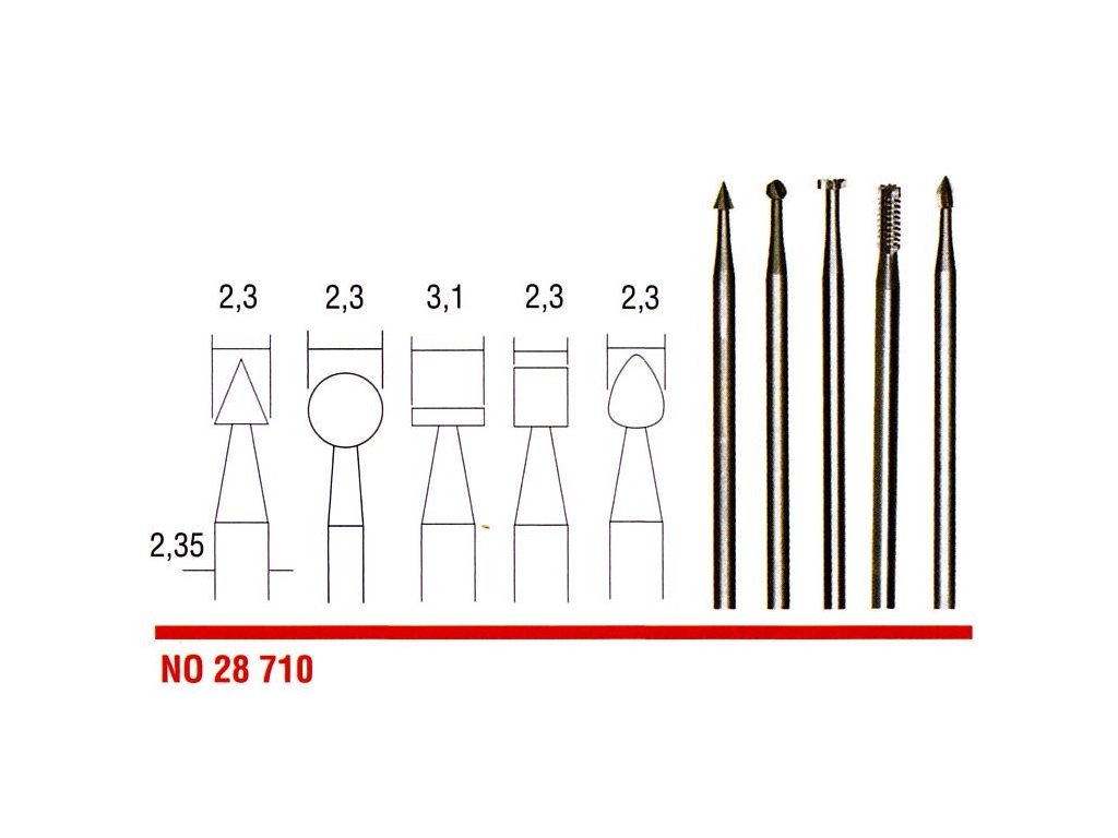 PROXXON Stopkové frézy z wolfram-vanadové oceli - kužel, koule, disk, válec, kapka 28710