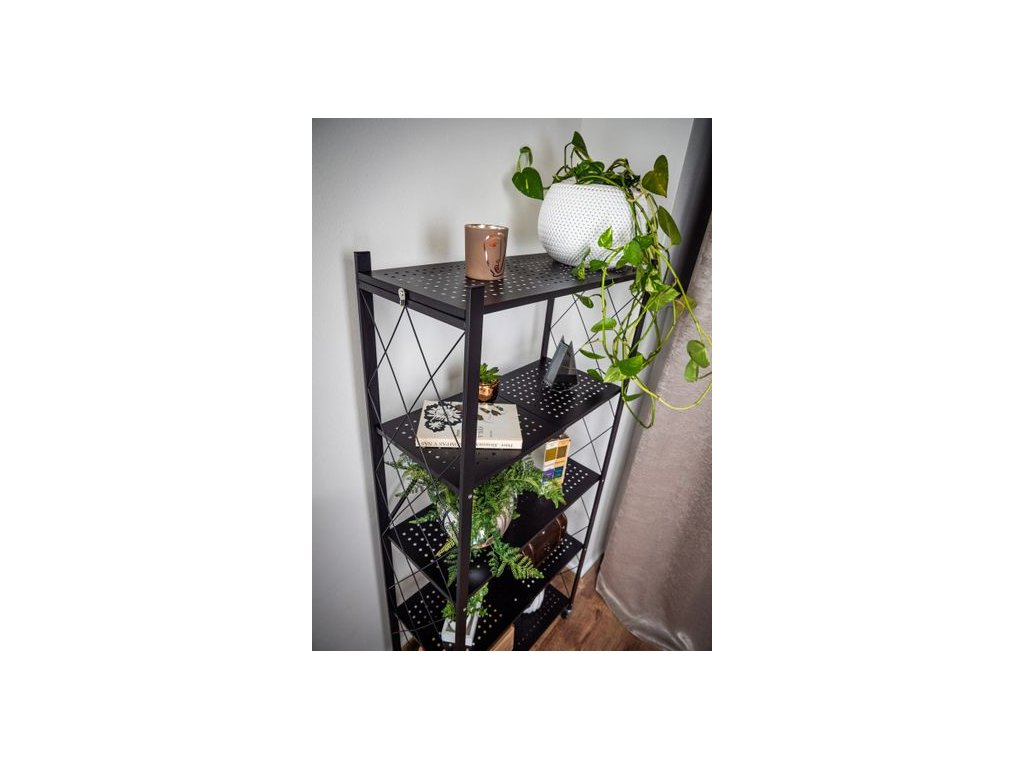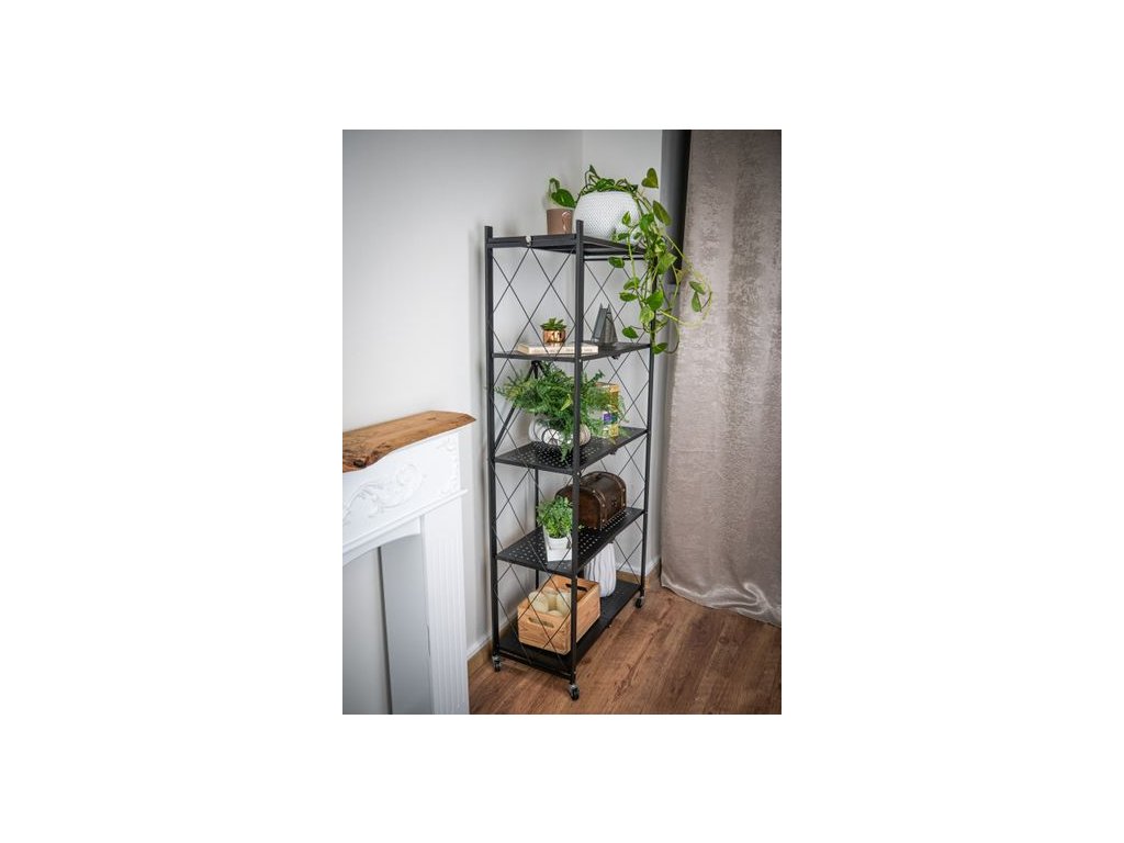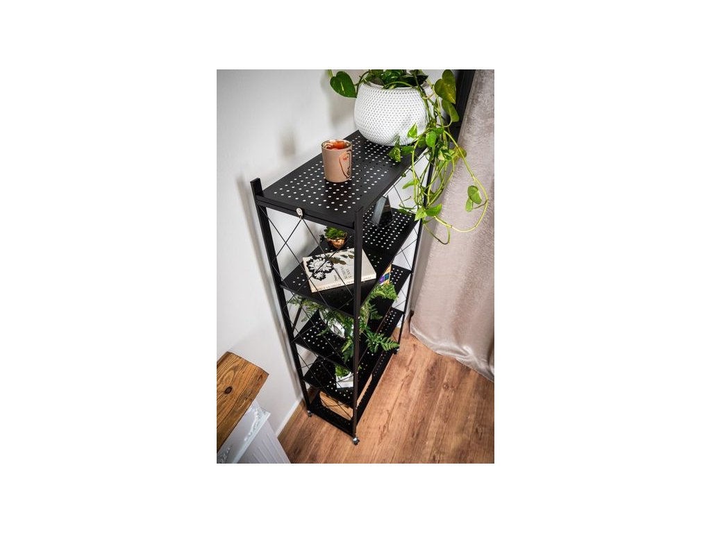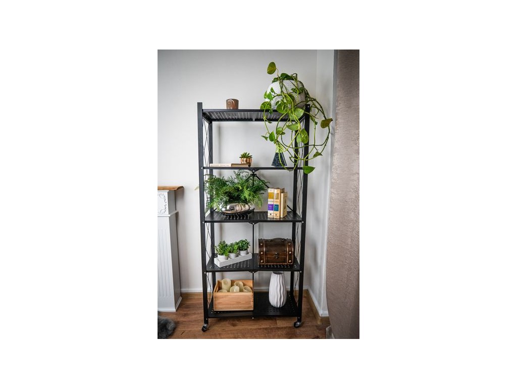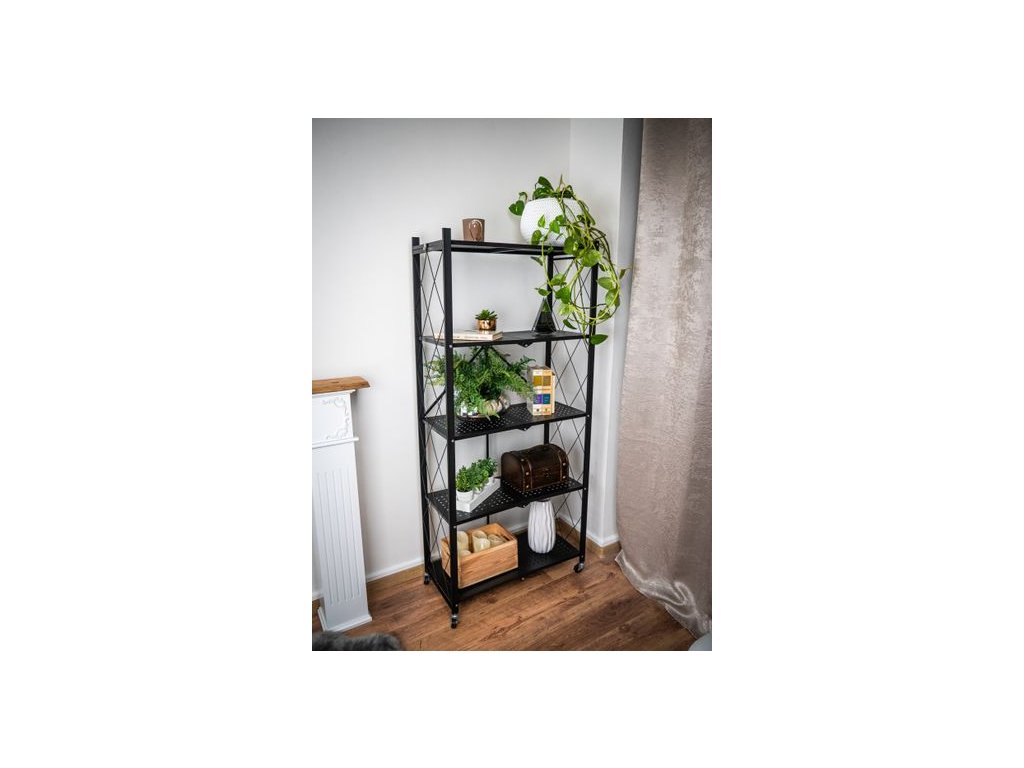 5-policový skladací a pojazdný regál MagicHome je praktický pomocník v domácnosti všade tam, kde potrebujete niečo uskladniť. Regál je celý kovový v elegantnom dizajne, jeho celková nosnosť je 250 kg a nosnosť jednej police je 50 kg pri rovnomernom zaťažení. Hlavnou výhodou regálu je jeho skladnosť a pojazdnosť. Vrchná časť sa jednoducho odmontuje a zvyšné police sa dajú jednoducho sklopiť, preto keď ho nepoužívate, jednoducho ho odložíte a vyberiete v prípade potreby. Keďže je postavený na 4 kolieskach, veľmi jednoducho ho presuniete a zabrzdíte 2 brzdami. Celkové rozmery regálu: 163x72x34 cm.