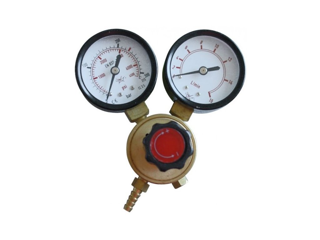 Jednostupňový, s uzatváracím ventilom podľa DIN EN 585. Manometer: 0 - 315 bar