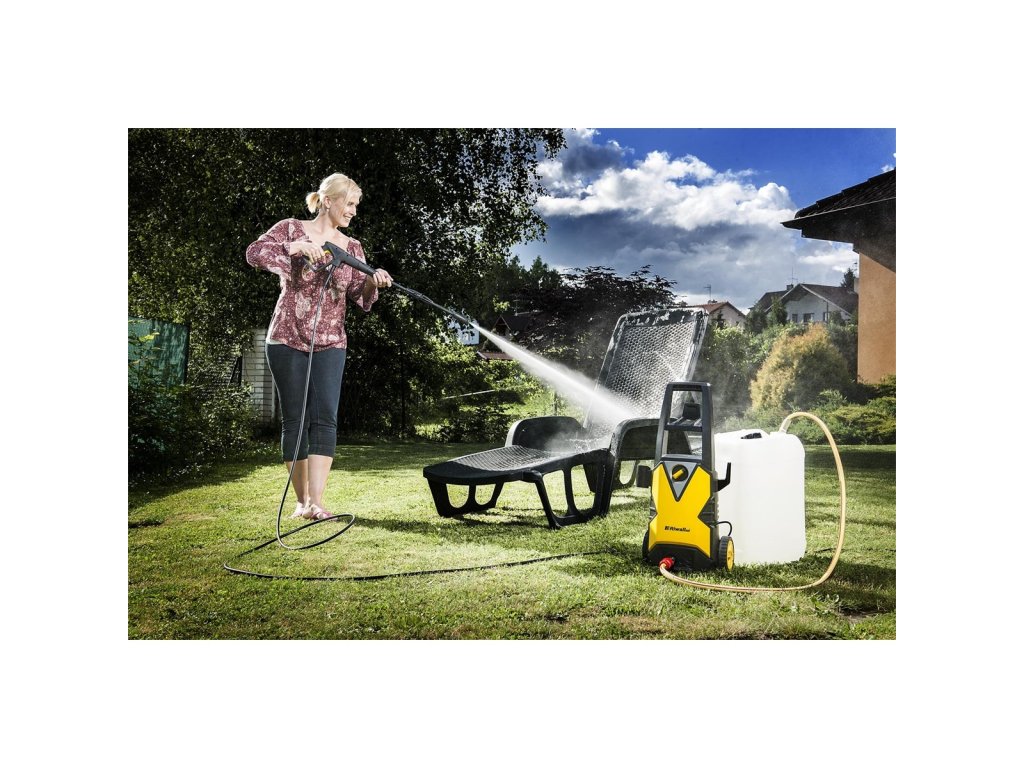 Výbava: Tlaková pistole s rychlospojkou Nástavec s otočnou nastavitelnou tryskou Nástavec s rotační turbo tryskou Tlaková hadice 5 m Elektrický kabel 5 m Průhledný vodní filtr Nádržka 0,5 l na saponát s tryskou Čerpadlo s funkcí samonasávání Pojezdová kola Výhody: • cenově dostupná a spolehlivá myčka je ideálním řešením pro čištění běžných nečistot kolem domu či dílny, kol, zahradního nábytku, plotů, terasy, motorových vozidel, zahradní techniky apod. • myčka je vybavena unikátním kovovým čerpadlem se samonasávací funkcí, což znamená, že lze myčku připojit nejenom na zdroj tlakové vody (kohoutek), ale lze nasávat vodu i z nádrží, kbelíku, sudu nebo vodních toků • systém auto stop při uvolnění spínače ihned vypíná motor – méně hlučnosti a úspora energie • průhledný vodní filtr brání vniknutí nečistot do čerpadla a snadno se kontroluje pouhým pohledem bez nutnosti demontáže • nastavitelná tryska vytváří plochý paprsek vody, který se dá pouhým otáčením trysky dle potřeby rozšiřovat • turbo tryska vytváří silný rotující paprsek vody, díky kterému se dají odstranit i velmi odolné nečistoty • moderní design a konstrukce splňující všechny požadavky na dobrou ergonomii a snadnou obsluhu • úložné prostory pro tlakovou pistoli s tryskou, hák na uložení hadice • nízká hmotnost, madlo a pojezdová kola pro snadnou manipulaci • možnost připojení bohatého příslušenství Případné bezpečnostní pokyny, výstrahy a upozornění jsou součástí návodu k obsluze, který je k dispozici v sekci KE STAŽENÍ. Kontaktní údaje výrobce / dovozce / zplnomocněného zástupce výrobce v EU: GARLAND distributor, s.r.o. Šturmova 1307, 50601 Jičín, Czech Republic email: garland@garland.czDoplňkové parametry