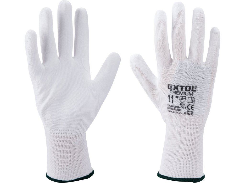rukavice z polyesteru polomáčené v PU, bílé, velikost 10", EXTOL PREMIUM