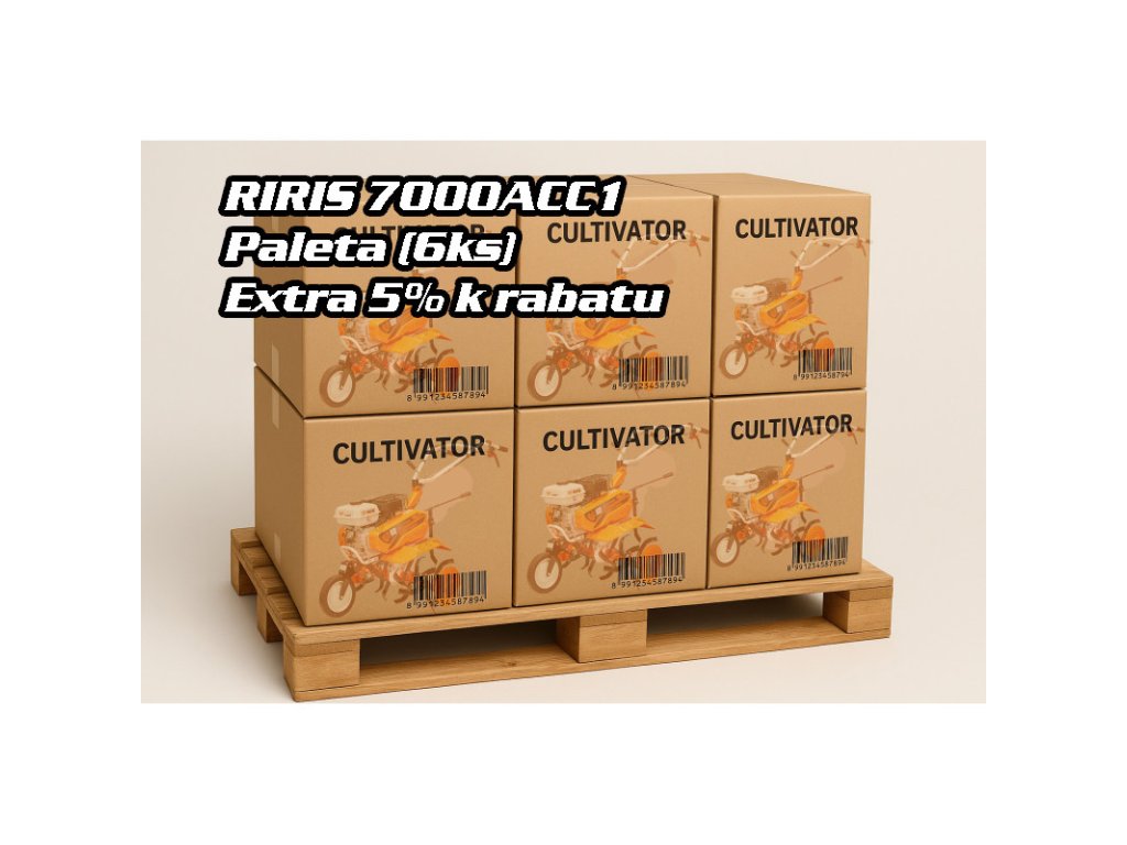 Paleta obsahuje: 6x motorový kultivátor RURIS 7000 6x nafukovacie kolesá 400x8 s poloosami 6x dvojradové kovové kolesá 350 bez poloosí 6x pluh nastavovací Kultivačné nože sú zmontované na oskách už v krabici - žiadne úmorné skladanie vás viac nečaká :) Ku kultivátoru je možné pripojiť bubnovú kosačku RURIS CRT570 obj.číslo:CRT570 Viac príslušenstva nájdete v "Príslušenstvo ku kultivátorom" Kultivátor RURIS 7000: Motor: General Motor Prevádzkový cyklus: 4takt Výkon motora: 7 HP Objem valca: 208 cm3 Prevod: Remeň a reťaz Skriňa prevodovky: Hliníková zliatina Rýchlosti: 2 vpred + 1 vzad Pracovná: šírka 560 -830 mm Pracovná hĺbka: Max 290 mm Palivo: Bezolovnatý benzín Objem nádrže: 3l Priemerná spotreba paliva: 1l/h Objem motorového oleja: 0,6l Objem prevodového oleja: 1,5l Priemerná obrábaná plocha: 600-1000 m2/h Hmotnosť: 80 kg Olejové čidlo: ÁNODoplňkové parametry