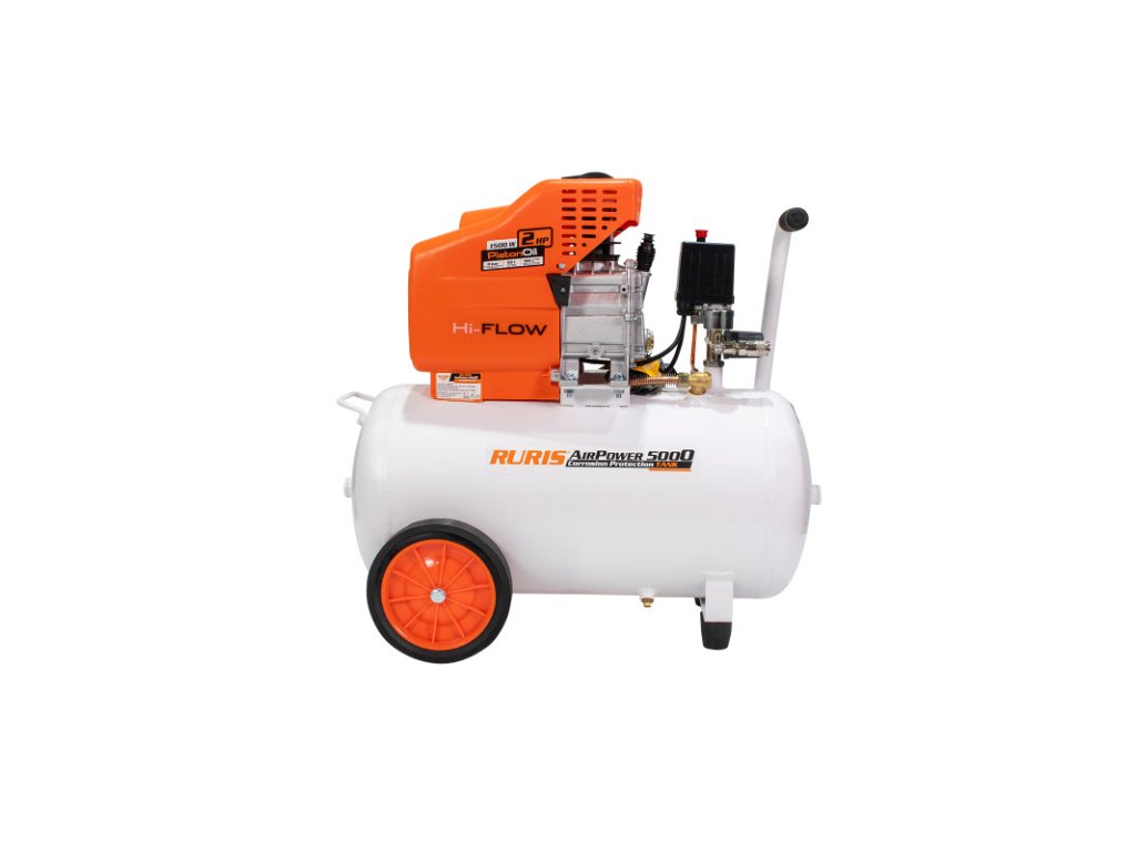 Kompresor RURIS Air Power 5000 je určený na napájanie a servisné práce v garáži, záhrade a dielni. Vlastnosti Vlastnosti kompresora sú starostlivo vybrané tak, aby mohli pracovať a nepretržite dodávať vzduch k príslušenstvu, ktoré k nemu používateľ pripevní. Kompresor RURIS Air Power 5000 je skonštruovaný s dvoma výstupnými vzduchovými okruhmi, takže je pripravený obsluhovať dvoch operátorov súčasne. Zároveň má každý okruh nezávislé monitorovanie tlaku zobrazeného na manometri. Kompresor RURIS Air Power 5000 je štandardne vybavený ventilom, ktorý nastavuje tlak v závislosti od použitia príslušenstva namontovaného na hadici kompresora. Vďaka možnosti nastavenia tlaku je príslušenstvo chránené a nemôže sa poškodiť a spotreba vzduchu sa znižuje, čo má výhodu v podobe zníženej spotreby energie a implicitne menšej hlučnosti. 50-litrový valec kompresora RURIS Air Power 5000, ktorým je kompresor vybavený, dokáže dodať veľký objem vzduchu na udržanie tlaku 8 barov po dlhú dobu. Kryt znižuje hluk produkovaný piestom kompresora a poskytuje zvýšené pohodlie počas používania. Má ergonomickú rukoväť, ktorá umožňuje rýchly pohyb. Vysokotlaková hadica sa pripája pomocou rýchlospojky, ktorou je vybavený kompresor RURIS Air Power 5000. Priemyselné použitie Priemyselní používatelia v stavebníctve, kde sa musí farba nanášať rovnomerne a bez nečistôt, môžu úspešne používať kompresor RURIS Air Power 5000 , ktorý im dokáže dodať kvalitu potrebnú pre dokonalý výsledok. Balenie obsahuje sadu príslušenstva pozostávajúcu z: ofukovacej pištole, striekacej pištole, umývacej pištole, plniacej pištole a špirálovej hadice. • Vzduchová fúkacia pištoľ sa používa na čistenie vzduchovým prúdom, najmä na ťažko dostupných miestach. • Striekacia pištoľ s horným kelímkom sa používa na metalické farby, laky, akrylové a vodou riediteľné farby. • Umývacia pištoľ má dlhú a praktickú rozprašovaciu trysku, ktorá umožňuje čistenie rôznych povrchov. • Plniaca pištoľ s manometrom sa používa na hustenie a reguláciu tlaku pneumatík, lodí a nafukovacích matracov. Je vybavená odvzdušňovacím ventilom. • 5 m špirálová hadica na pripojenie striekacej pištole, pneumatického náradia a iných pneumatických zariadení. Typ motora Elektrický Výkon 1500W Napájacie napätie 230V-240V 50Hz Rýchlosť 2850 ot./min Objem nádrže 50 l Maximálny prietok nasávaného vzduchu (l/min) 180 Maximálny pracovný tlak 8 bar Typ vzduchového potrubia Medené Počet vývodov 2 s individuálnym manometrom Veľkosť kolies 6” Hmotnosť 30 kg Záruka 24 mesiacovDoplňkové parametry