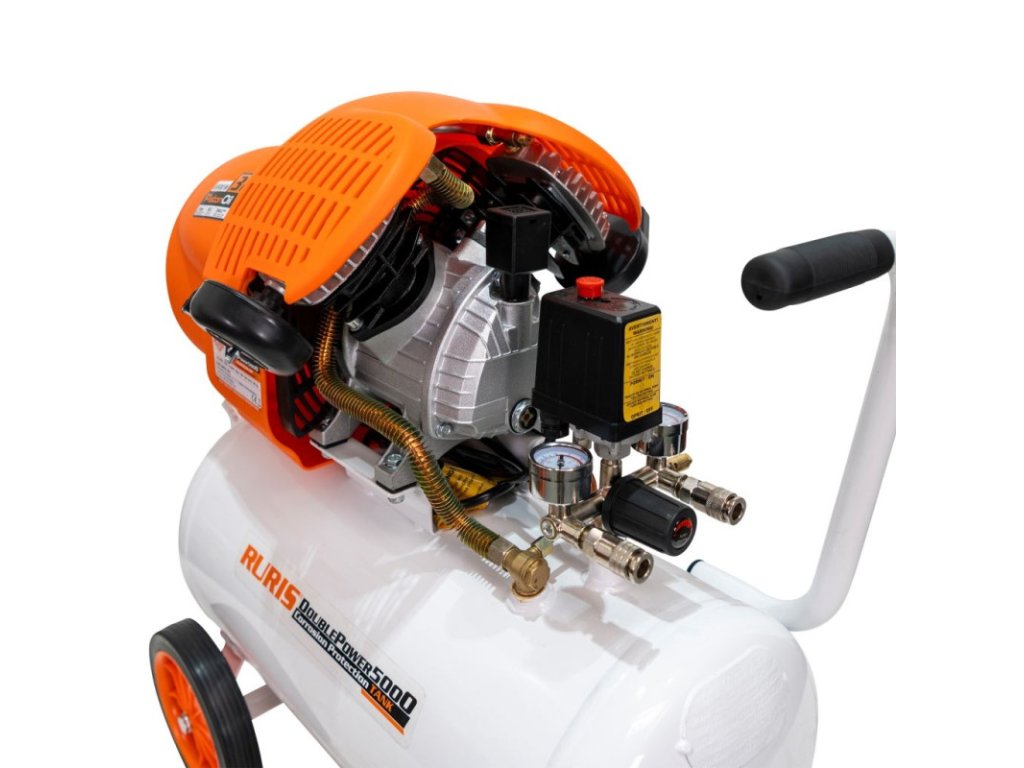Vzduchový kompresor RURIS Double Power 5000 je nástroj, ktorý dokazuje svoju užitočnosť a všestrannosť v mnohých oblastiach, od automobilových dielní a stavebníctva až po údržbu domácnosti alebo poľnohospodárske práce. S výkonom 2200 W (3 HP) dokáže kompresor RURIS poháňať širokú škálu pneumatického náradia – od striekačiek a skrutkovačov až po čistiace alebo hustiace zariadenia. Vďaka svojej prevádzkovej účinnosti a schopnosti neustále dodávať stlačený vzduch sa takýto kompresor stáva praktickou voľbou pre profesionálov aj domácich používateľov, ktorí hľadajú výkon, efektivitu a úsporu času. Vlastnosti: Elektromotor Výkon 2200 W Maximálny tlak 8 barov Maximálny prietok vzduchu 354 l/min Kolieska na premiestňovanie Skutočnosť, že kompresorový motor RURIS Double Power 5000 je elektrický, prináša viacero výhod vrátane toho, že stroj je tichší, čistejší a vyžaduje si menej údržby v porovnaní s benzínovými alebo naftovými motormi. Okrem toho elektrické napájanie umožňuje rýchle spustenie a nepretržitú prevádzku v uzavretých priestoroch bez znečisťujúcich emisií, vďaka čomu je ideálny na použitie v dielňach, garážach alebo priemyselných priestoroch, kde je bezpečnosť a kvalita ovzdušia nevyhnutná. Maximálny tlak 8 barov umožňuje kompresoru RURIS Double Power 5000 efektívne napájať rôzne pneumatické nástroje a zariadenia. Dva výstupy kompresora RURIS Double Power 5000 , každý vybavený samostatným manometrom, umožňujú súčasné použitie dvoch pneumatických nástrojov s nezávislým nastavením tlaku. Tento systém ponúka zvýšenú flexibilitu pri práci a šetrí čas, pričom je ideálny pre rôzne úlohy vykonávané paralelne. Súčasťou sú aj 2 kompresorové valce, ktoré sú navrhnuté tak, aby stláčali vzduch rýchlejšie a rovnomernejšie, čím sa zabezpečí konštantný prietok a stabilný tlak. To skracuje čakaciu dobu na doplnenie nádrže a umožňuje nepretržité používanie pneumatického náradia aj v náročných podmienkach. Maximálny prietok vzduchu 354 l/min zaisťuje konštantný a efektívny prísun vzduchu do náradia, a to aj pri intenzívnom používaní. Kompresor RURIS Double Power 5000 tak ponúka vysokú účinnosť, ideálnu pre aplikácie, ktoré vyžadujú nepretržitý prietok vzduchu bez prerušenia. Pre jednoduchú manipuláciu je kompresor RURIS Double Power 5000 vybavený robustnými kolieskami, ktoré umožňujú rýchly a bezpečný pohyb v pracovnom priestore. Typ produktu Kompresor Typ motora Elektrický Výkon 2200W/ 3HP Napájacie napätie 230V-240V 50Hz Rýchlosť 2850 ot./min Objem nádrže 50 l Maximálny prietok nasávaného vzduchu (l/min) 354 Maximálny pracovný tlak 8 bar Počet valcov 2 Typ mazania Olejový Počet výstupov 2 s individuálnym manometrom Veľkosť kolies 8” Čistá hmotnosť s príslušenstvom 40 kgDoplňkové parametry