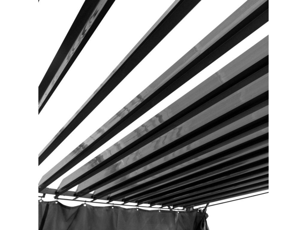 Pergola Ruris 295395 je moderné a praktické riešenie pre usporiadanie vonkajších priestorov, zabezpečenie ochrany pred slnkom, pre vytvorenie miesta na relax a prijímanie hostí. Pergola je ideálna na terasy, záhrady alebo nádvoria, má elegantný dizajn a rozmery 295 x 395 x 220 cm, čo predstavuje pokrytie plochy 12 m². Prvou výhodou tohto modelu je robustná konštrukcia vyrobená zo sivo lakovanej ocele, ktorá zaisťuje stabilitu a odolnosť. Strecha pozostáva z manuálne nastaviteľných lamiel ovládaných 120 cm kľukou, ktoré umožňujú reguláciu úrovne tienenia. 20 lamiel je vyrobených z hnedého polykarbonátu, odolného voči UV žiareniu a poveternostným vplyvom. Pergolové závesy nie sú v cene. Vlastnosti: Rozmery: 295 x 395 x 220 cm Plocha takmer 12 m² Oceľová konštrukcia Zalomená strecha s 20 lopatkami Hmotnosť 106 kg Pergola váži 106 kg, čo z nej robí dostatočne robustný a odolný produkt. Dá sa udržiavať aj v jednoduchej forme alebo na ňu pripevniť špeciálne závesy dostupné v rade RURIS. Materiál konštrukcie: oceľ Farba: sivá Počet lamiel: 20 Nastaviteľná strecha: áno Rozmery konštrukcie: 60x60 / 60x30 / 30x20 mm Rozmery pergoly (D x Š x V): 395 x 295 x 220 Hmotnosť: 106kgDoplňkové parametry