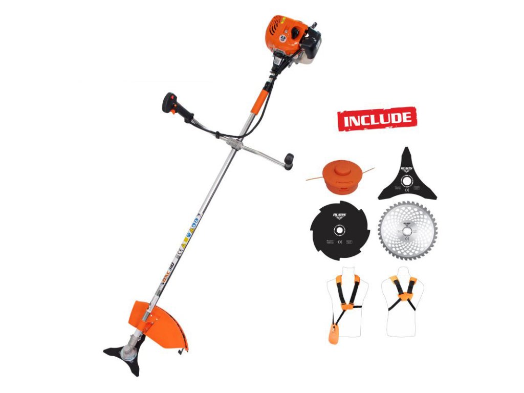 Krovinorez DAC 310 je perfektnou voľbou pre každého užívateľa, ktorý chce stredne výkonný krovinorez za vynikajúcu cenu v porovnaní s výkonom, ktorý môže krovinorez DAC 310 ponúknuť. Krovinorez DAC 310, vybavený 2-taktným benzínovým motorom s výkonom 2,5 HP, je ľahký, ľahko sa s ním manipuluje a zaisťuje rýchlejšie kosenie, čo z neho robí ten správny nástroj na kosenie trávy na dvore, buriny a hustej tvrdej trávy. Viacnásobné použitie Krovinorez DAC 310 je vhodný na kosenie trávy a na kozmetické práce okolo stromov, príjazdových ciest, ciest a plotov v súkromných záhradách. Dá sa použiť na kosenie v rovinatých a kopcovitých oblastiach, ale aj na terénne úpravy. Ľahko ovládateľný krovinorez DAC 310 má jednoduchý manuálny postup štartovania a nastaviteľnú rukoväť pre ergonomické kosenie veľkých plôch. Krovinorez DAC 310 umožňuje jednoduchú prácu každému používateľovi, aj keď nie je zasvätený alebo nemá veľa skúseností s manipuláciou s krovinorezom. Spoľahlivosť 2,5 HP krovinorez, spoľahlivý, odolný a so zlepšenou ergonómiou, krovinorez DAC 310 je vybavený 2-taktným motorom TEZ Engines. Motor Tez Prevádzkový cyklus 2-takt Výkon motora 2,5 HP Objem valca 52 cm3 Manuálny štart Palivo Bezolovnatý benzín + olej Objem nádrže 1200 ml Priemerná spotreba paliva 1,1 l/h Palivová zmes 25 ml olej/liter benzínu Popruh Dvojité vyváženie Ergonomické rukoväte - 2 segmenty vybavené 2 segmentmi Priemer rezu (voliteľné) 200-250 mm Priemerný polomer rezu 2100 mm Priemer rúrky tyče 28 mm Typ hriadeľa S drážkami Hmotnosť 8 kgDoplňkové parametry