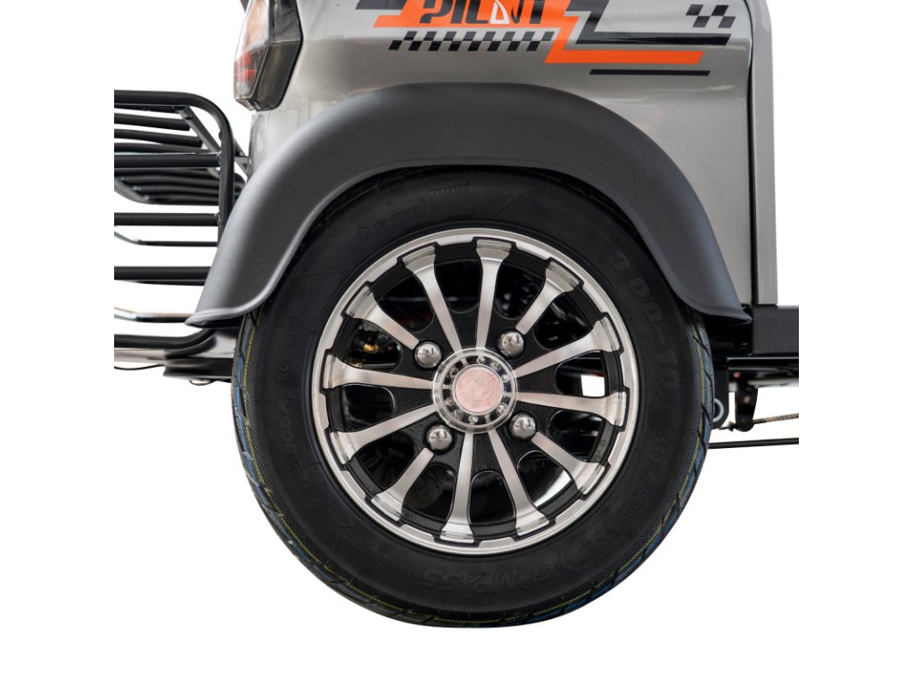 Motor: elektrický 2,5kW Max. rýchlosť: 25km / h Brzda predná / zadná: kotúčová / bubnová Kolesá predné / zadné: 3.00 x 10 Dojazd: 40 – 60 km Batéria: 72V/32A Nabíjačka / doba nabíjania: 72V/4A / 6-8 h Posádka: 1 vodič + 1 spolujazdec Rozmery D x Š x V: 2150x880x1700mm Hmotnosť bez batérie: 140 kg Maximálne zaťaženie: 225kg Schválené na jazdu po verejných komunikáciách – možnosť prihlásenia na ŠPZDoplňkové parametry