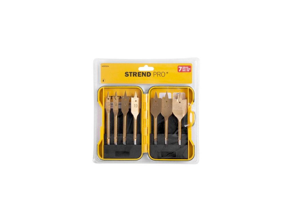 Praktická sada plochých vrtákov Strend Pro do dreva v puzdre. Ideálna na vŕtanie otvorov do tvrdého a mäkkého dreva.