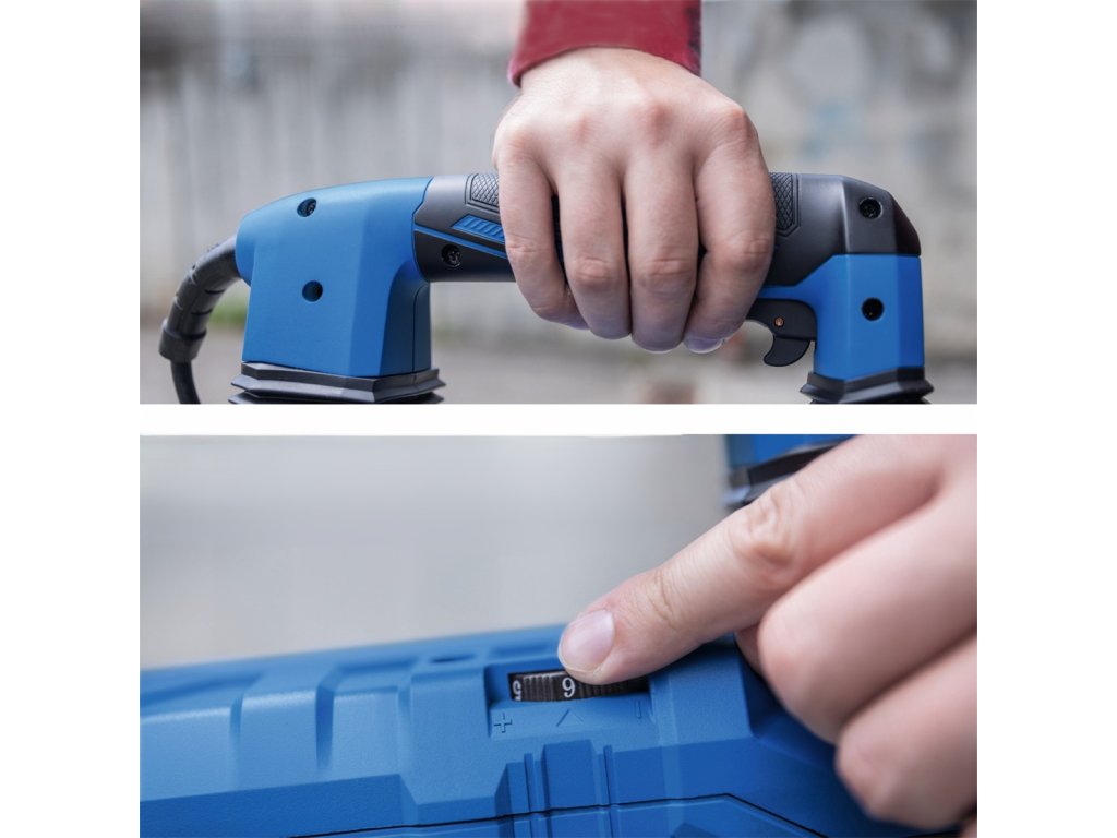 Pokrok nelze zastavit, což platí i pro bourací kladiva společnosti Schepppach, která přichází s evolucí modelu AB 2000. Nový model výkonného bouracího kladiva Scheppach AB 2000 se silou úderu 60 J je určen pro středně těžké až těžké bourací práce v betonu, cihlách, kameni a dalších stavebních materiálech. Moderní konstrukce si však stále zachovává mnoho funkčních a komfortních prvků, které výrazně zvyšují pohodlí i bezpečnost při práci. Silný motor o příkonu 1700 W má zvýšenou ochranu proti přehřátí. Speciální antivibrační technologie spolu s měkčeným povrchem madla výrazně snižuje celkové vibrace. Přídavná pracovní rukojeť lze nastavit v rozsahu 360° bez použití nářadí pro ergonomickou a neunavující práci. K dispozici je 6 stupňů nastavení frekvence příklepu (200-2100 úder./min) v závislosti na typu materiálu. Praktická aretace chodu spínače umožňuje nepřetržitý chod. Upínání SDS MAX pak zajišťuje snadnou a rychlou výměnu nástroje. Celková provozní hmotnost bouracího kladiva činí 13,2 kg. Přístroj je vybaven 4 m dlouhým přívodním kabelem a dodává se v robustním kufru s kolečky. Kladivo je v základní výbavě dodáváno s bohatým příslušenstvím. Součásti balení: plastické mazivo náhradní uhlíky imbusový klíč špičatý sekáč plochý sekáč plastový kufr servisní nářadí přídavná rukojeť Případné bezpečnostní pokyny, výstrahy a upozornění jsou součástí návodu k obsluze, který je k dispozici v sekci KE STAŽENÍ. Kontaktní údaje výrobce / dovozce / zplnomocněného zástupce výrobce v EU: Scheppach GmbH Günzburger Str. 69, 89335 Ichenhausen, Germany email: service@scheppach.comDoplňkové parametry