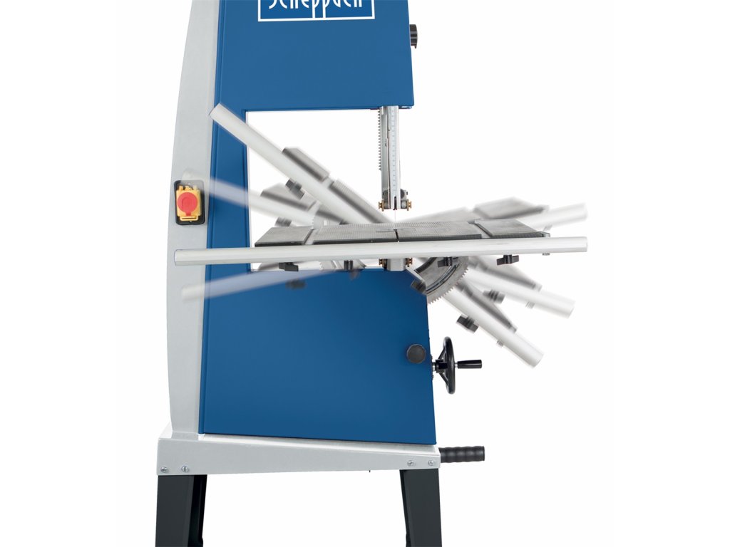 Pásová pila Scheppach BASA 3 je profesionální stroj, který v sobě zahrnuje většinu jedinečných technologických řešení z celé řady BASA, ověnčené mnohými tituly. Tato stolová pila tak nabízí mnohem více, než její konkurenti ve třídě. Vše začíná velmi precizním vedením pilového pásu na třech kalených heavy-duty válečkách, a to jak nad, tak i pod stolem. Pás je přesně veden na velkém, speciálně centrovaném a broušeném kole s gumovým povrchem. To je součástí unikátního systému nastavitelné rychlosti Vario Drive. Horní část držáku pilového pásu je výškově nastavitelná otáčením ovládacího kolečka. Pás sám se dá bleskově vyměnit díky jednoduchému mechanizmu s rychloupínací pákou. Masívní stolek je vyroben ze slitiny hliníku a dá se naklápět v rozmezí -8° až +45°. Stolek dodává dostatečnou podporu pro obrobek a díky úpravě povrchu výrazně snižuje tření, takže obrobek po něm můžete naprosto přesně posouvat. Velmi přesné pravítko, osazené pro zlepšení čitelnosti měřítka zvětšovacím sklem, se dá uchytit z obou stran pilového pásu. Pila se vyznačuje i vynikajícími hodnotami řezné výšky a šířky, které dělají 205 mm a 306 mm. Pásová pila je rovněž vybavena konektorem pro připojení odsavače pilin a robustním stojanem s kolečky a výsuvnou pákou pro snadný transport. Na výběr je jak varianta na 230 V, tak i na 400 V.