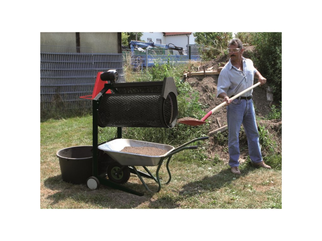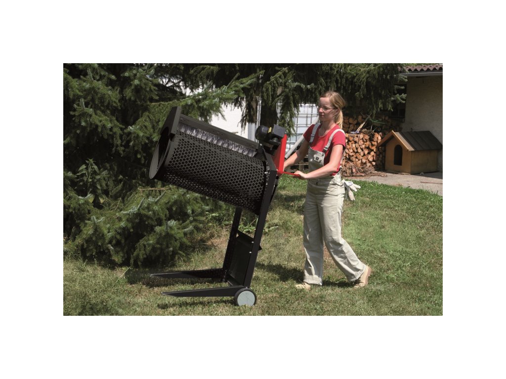 Rotační přesívač RS 400 je neocenitelný pomocník při přesívání sypkých materiálů. Bez problémů proseje zeminu, písek, kompost a další sypké materiály, a to až rychlostí 3 m3 za hodinu. Průměr otvorů v síti 2 cm se dá pomocí standardně dodávané vložky snížit na 1 cm. Sklon bubnu je nastavitelný, buben je vybaven kartáčem, který průběžně čistí otvory i při práci s vlhkým materiálem a celý stroj je vybaven dvěma koly pro snadný transport.