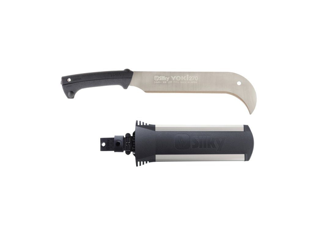 Víme, že na čištění křovin nechce člověk jen tak ledajakou mačetu, ale masivní čepel, která dokáže čistit křoví lehkým švihnutím. A zahnutá mačeta Yoki je právě tím dokonalým nástrojem, který si poradí s řezáním popínavých rostlin, větví a malých kmenů na zvládnutelnou a produktivní velikost. Čepel mačety je vyrobena ze speciální legované oceli s vynikající povrchovou úpravou a má 270 mm dlouhé dvojitě broušené ostří. Gumová rukojeť typu Genki se skládá pouze ze dvou částí a nemá žádné šrouby ani matice pro maximální pohodlí a kontrolu. Rukojeť lze snadno odepnout z čepele bez použití jakéhokoli nářadí a zároveň maximálně tlumí vzniklé vibrace. Yoki je standardně dodávána s odolným ochranným pouzdrem, které chrání čepel a vaše prsty. Otvor v rukojeti a čepeli pak usnadňuje upevnění nebo zavěšení tohoto nástroje. Údržba mačety Pro zachování účinnosti je nutné udržovat čepel v čistotě. Pokud je tedy ostří zalepeno pryskyřicí, či mízou, použijte k čištění olivový olej. Jedná se o účinný a ekologický způsob, jak rozpustit tyto nečisoty. Pokud mačetu déle nepoužíváte, dbejte na to, aby byla vždy suchá. Případné bezpečnostní pokyny, výstrahy a upozornění jsou součástí návodu k obsluze. Kontaktní údaje výrobce / dovozce / zplnomocněného zástupce výrobce v EU: De Wild B.V. Spectrum 38, 4706 NM Roosendaal, Netherlands email: support@silky-europe.comDoplňkové parametry