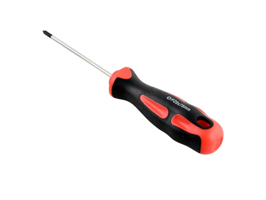 Krížový skrutkovač z vysoko kvalitnej chróm-vanádiovej ocele má čierno brunírovaný hrot pre maximálnu presnosť, hrot je magnetický, výrazne uľahčuje vkladanie skrutiek a zabraňuje ich strate. Ergonomická dvojzložková rukoväť ProLine dobre padne do ruky a umožňuje pohodlnú prácu bez únavy. Krížový skrutkovač z vysoko kvalitnej chróm-vanádiovej ocele má čierno brunírovaný hrot pre maximálnu presnosť, hrot je magnetický, výrazne uľahčuje vkladanie skrutiek a zabraňuje ich strate. Ergonomická dvojzložková rukoväť ProLine dobre padne do ruky a umožňuje pohodlnú prácu bez únavy. Otvor v rukoväti zaisťuje úhľadné zavesenie na stene s náradím alebo sa dá použiť ako ďalší pákový bod. Na použitie s rôznymi bitmi. Driek: chróm-vanádiová oceľ Rukoväť: dvojzložkový plast Farba: čierna, červená Veľkosť: PZ 0x75 mm Celková dĺžka: 165 mm Hmotnosť: 36 gDoplňkové parametry