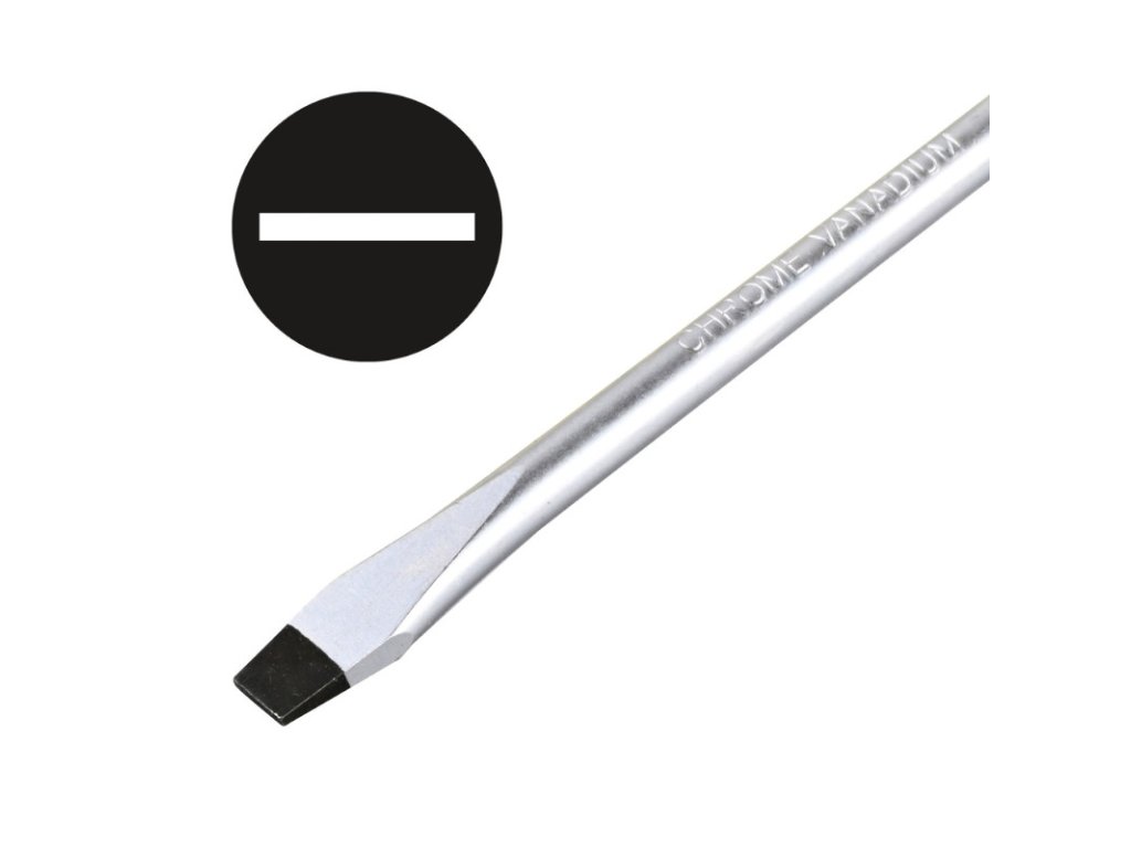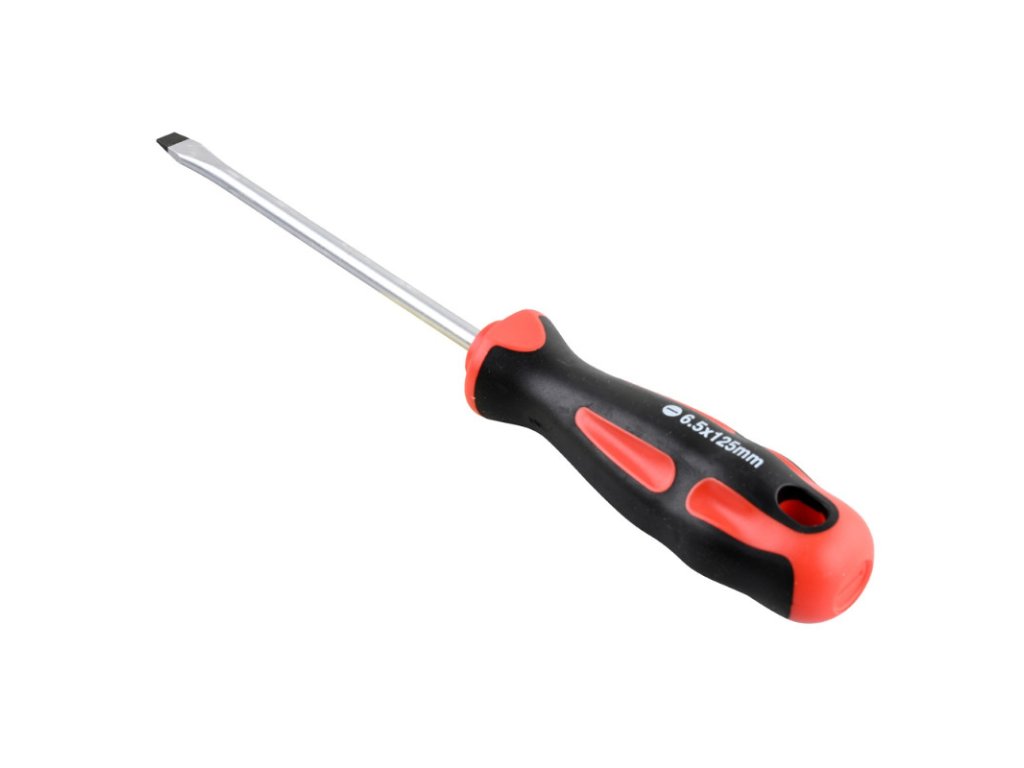 Plochý skrutkovač z vysoko kvalitnej chróm-vanádiovej ocele má čierno brunírovaný hrot pre maximálnu presnosť, hrot je magnetický, výrazne uľahčuje vkladanie skrutiek a zabraňuje ich strate. Ergonomická dvojzložková rukoväť ProLine dobre padne do ruky a umožňuje pohodlnú prácu bez únavy. Plochý skrutkovač z vysoko kvalitnej chróm-vanádiovej ocele má čierno brunírovaný hrot pre maximálnu presnosť, hrot je magnetický, výrazne uľahčuje vkladanie skrutiek a zabraňuje ich strate. Ergonomická dvojzložková rukoväť ProLine dobre padne do ruky a umožňuje pohodlnú prácu bez únavy. Otvor v rukoväti zaisťuje úhľadné zavesenie na stene s náradím alebo sa dá použiť ako ďalší pákový bod. Na použitie s rôznymi bitmi. Driek: chróm-vanádiová oceľ Rukoväť: dvojzložkový plast Farba: čierna, červená Veľkosť: SL 6,5x125 mm Celková dĺžka: 235 mm Hmotnosť: 89 gDoplňkové parametry