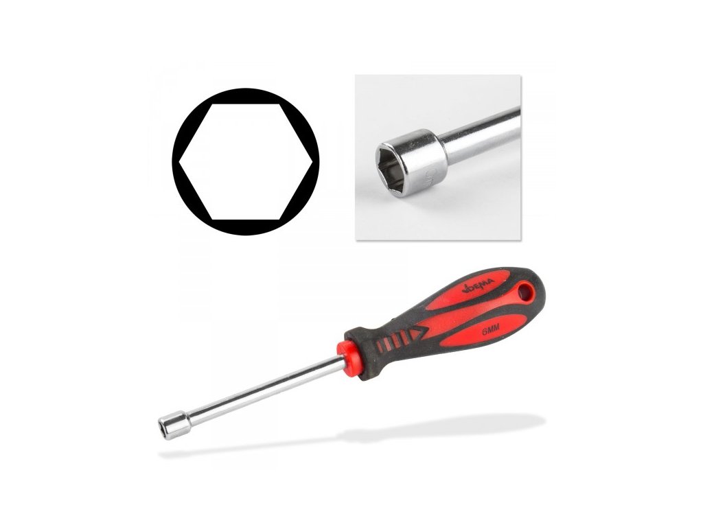 Nástrčkový šesťhranný skrutkovač z kvalitnej chrómovo-vanádiovej ocele. Pevná ergonomicky tvarovaná plastová rukoväť s protišmykovou úpravou. Praktické očko na zavesenie skrutkovača. Kvalitná chróm-vanádiová oceľ