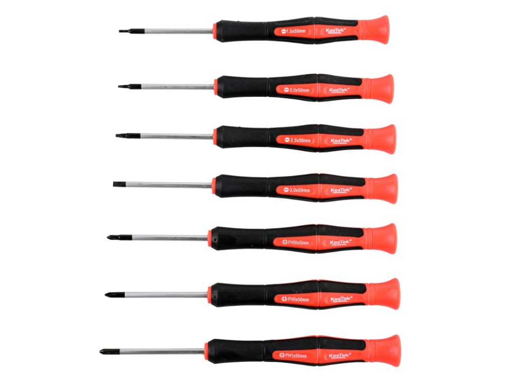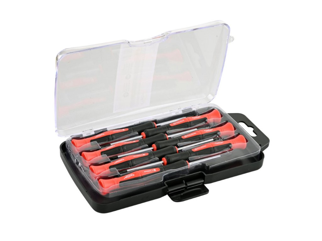 Skrutkovače z vysoko kvalitnej chróm-vanádiovej ocele, hroty sú magnetické, čo výrazne uľahčuje vkladanie skrutiek a zabraňuje ich strate. Ideálne pre všetky jemné a presné práce. Každý skrutkovač má otočný driek, ktorý výrazne uľahčuje skrutkovanie tlakom dlane. Skrutkovače z vysoko kvalitnej chróm-vanádiovej ocele, hroty sú magnetické, čo výrazne uľahčuje vkladanie skrutiek a zabraňuje ich strate. Ideálne pre všetky jemné a presné práce. Každý skrutkovač má otočný driek, ktorý výrazne uľahčuje skrutkovanie tlakom dlane. Veľkosti: PH0,0 / PH0 / PH1 / SL1,5 / SL2,0 / SL2,5 / SL3,0 Driek: chróm-vanádiová oceľ Rukoväť: PVC Farba: čierna, červená Dĺžka drieku: 50 mm Celková dĺžka: 150 mm Rozmery boxu: 220 x 120 x 30 mm Hmotnosť sady: 233 gDoplňkové parametry