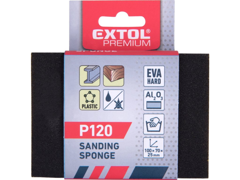 brusná houba, 100x70x25mm, P120, čtyřstranná, abrazivo-korund, EXTOL PREMIUM