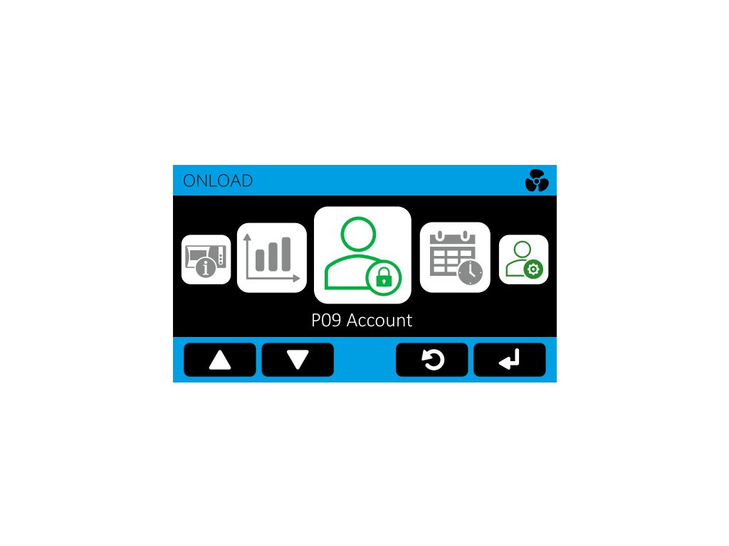 - Počítadlo provozních hodin, které rozlišuje mezi chodem naprázdno a zatížením, umožňuje přesné dodržení intervalů údržby – údržbové upozornění se automaticky zobrazí na displeji po uplynutí daného intervalu