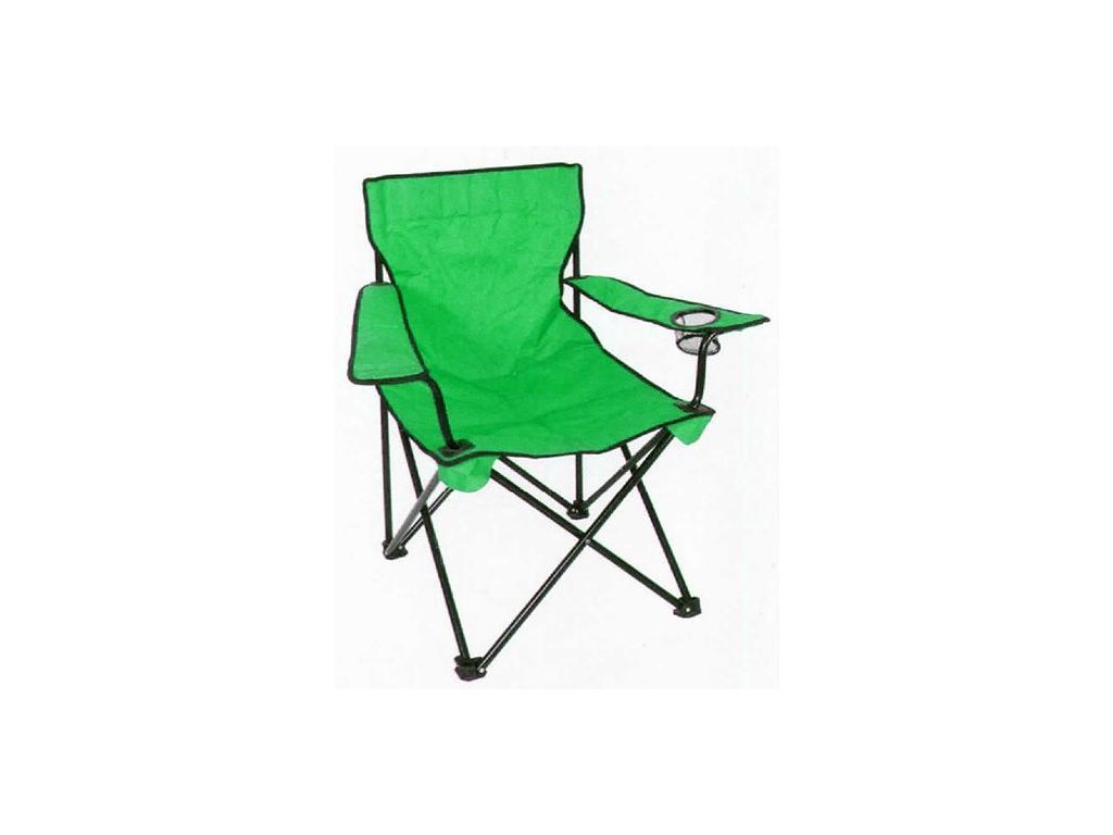 Zelená skladacia stolička je funkčným doplnkom do záhrady, na rybárčenie, stanovačku a pod. Stoličku je možné zložiť, vďaka čomu zaberá málo miesta a je ľahko prenosná. Hlavná konštrukcia je vyrobená z kovu, časť na sedenie a opieranie je látková. Jej rozmery sú 50 x 50 x 90 cm a nosnosť 120 kg. Stolička má v bočnej opierke na lakeť vyhradené miesto pre umiestnenie nápoja.