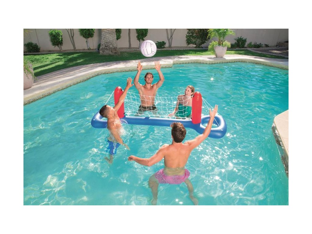 Volejbalový set je kombináciou zábavy a kvality a je určený na použitie vo vode. Jednoducho ho nafúknite, pripojte sieť a umiestnite do bazéna. Deti si tak môžu zdokonaliť svoje volejbalové zručnosti. Súčasťou setu je volejbalová lopta, nylonová sieť aj záplata na opravu.