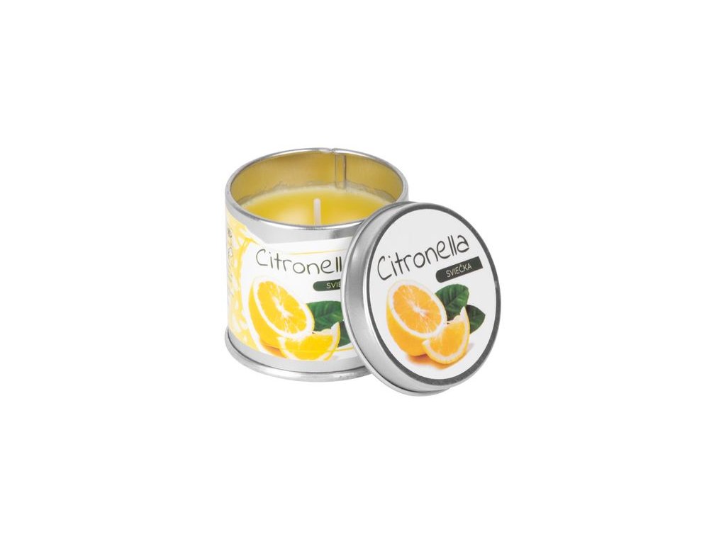 Sviečka Citronella v plechovke prevonia Váš domov sviežou citrusovou vôňou. Doba horenia : 8 hodín. Rozmery : 55x55 mm.