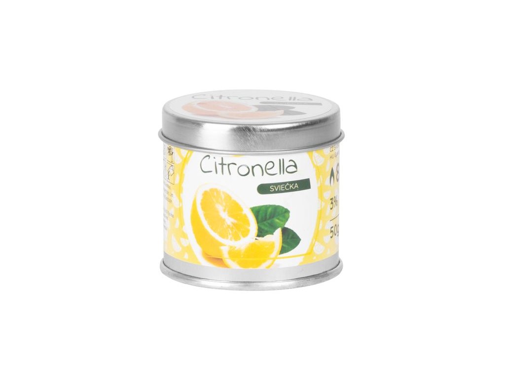 Sviečka Citronella, repelentná, plechová dóza, 50 g, 55x55 mm, Sellbox 12 ks