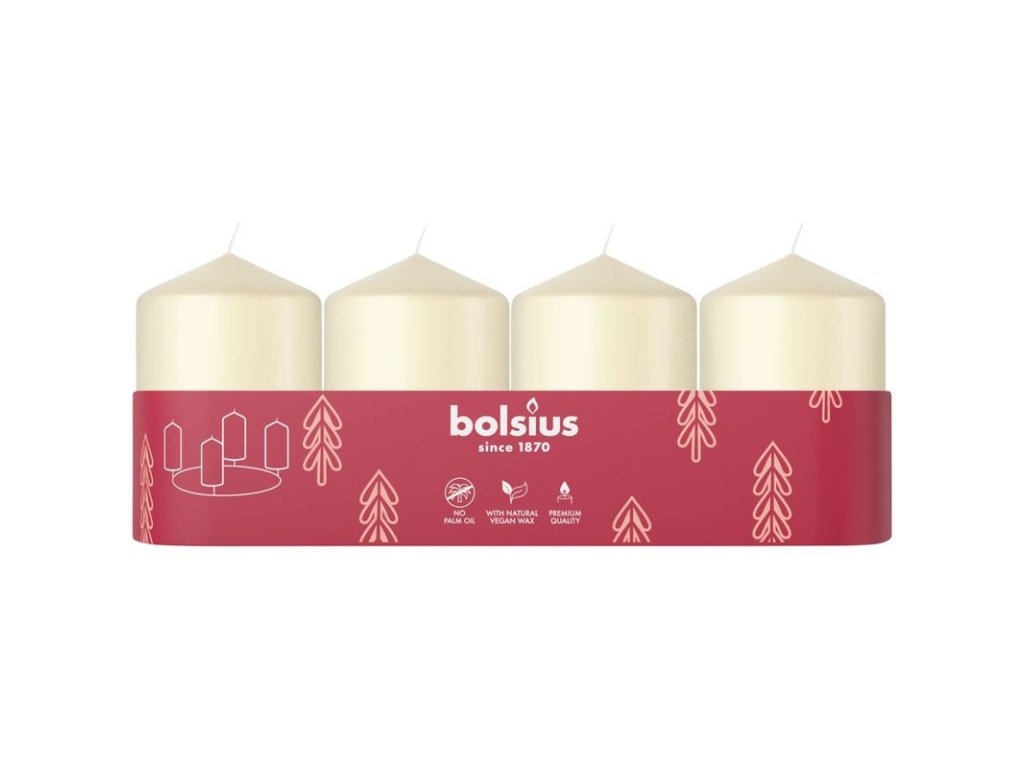 Sviečky Bolsius Pillar Advent, krémové, 60x40 mm, bal. 4 ks